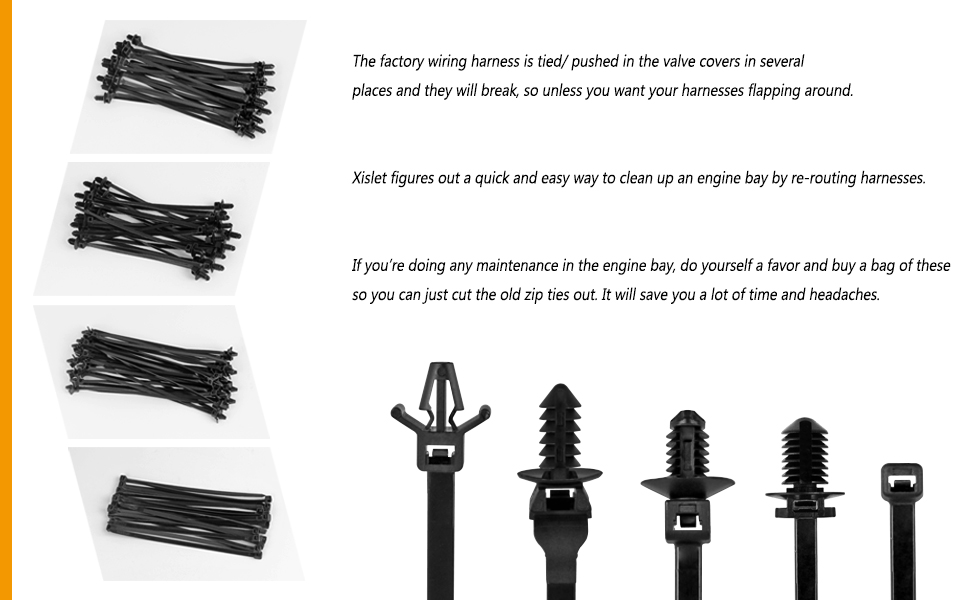 - Package included - 160PCS (5-types) car/utv zip ties cable mount in a package, you will need multiple sizes to reinstall an engine and put in a wire