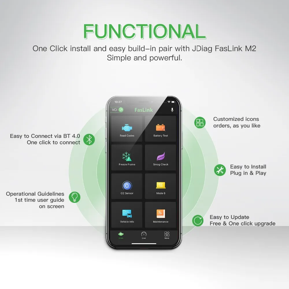JDiag OBD2 Code Reader Bluetooth 4.0 FasLink M2 Phone Diagnostic Tool PK Blue Driver EasyDiag Auto Scanner for iPhone Android