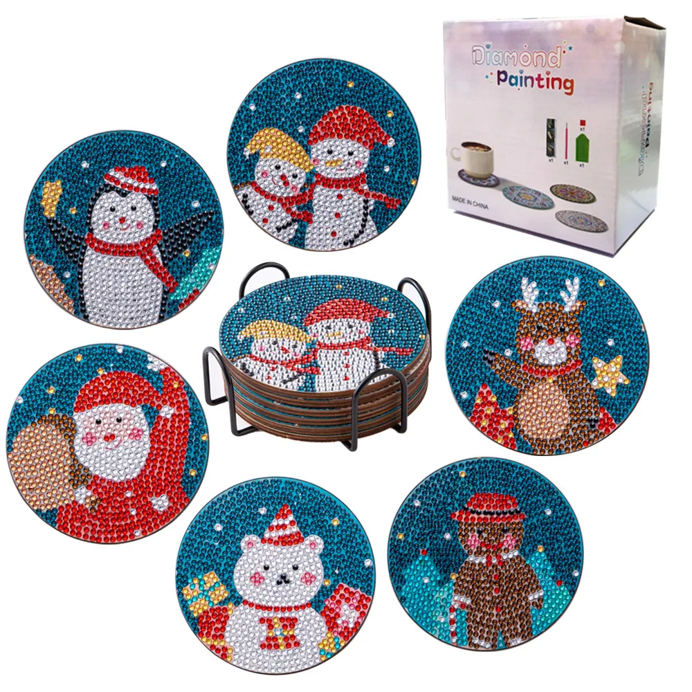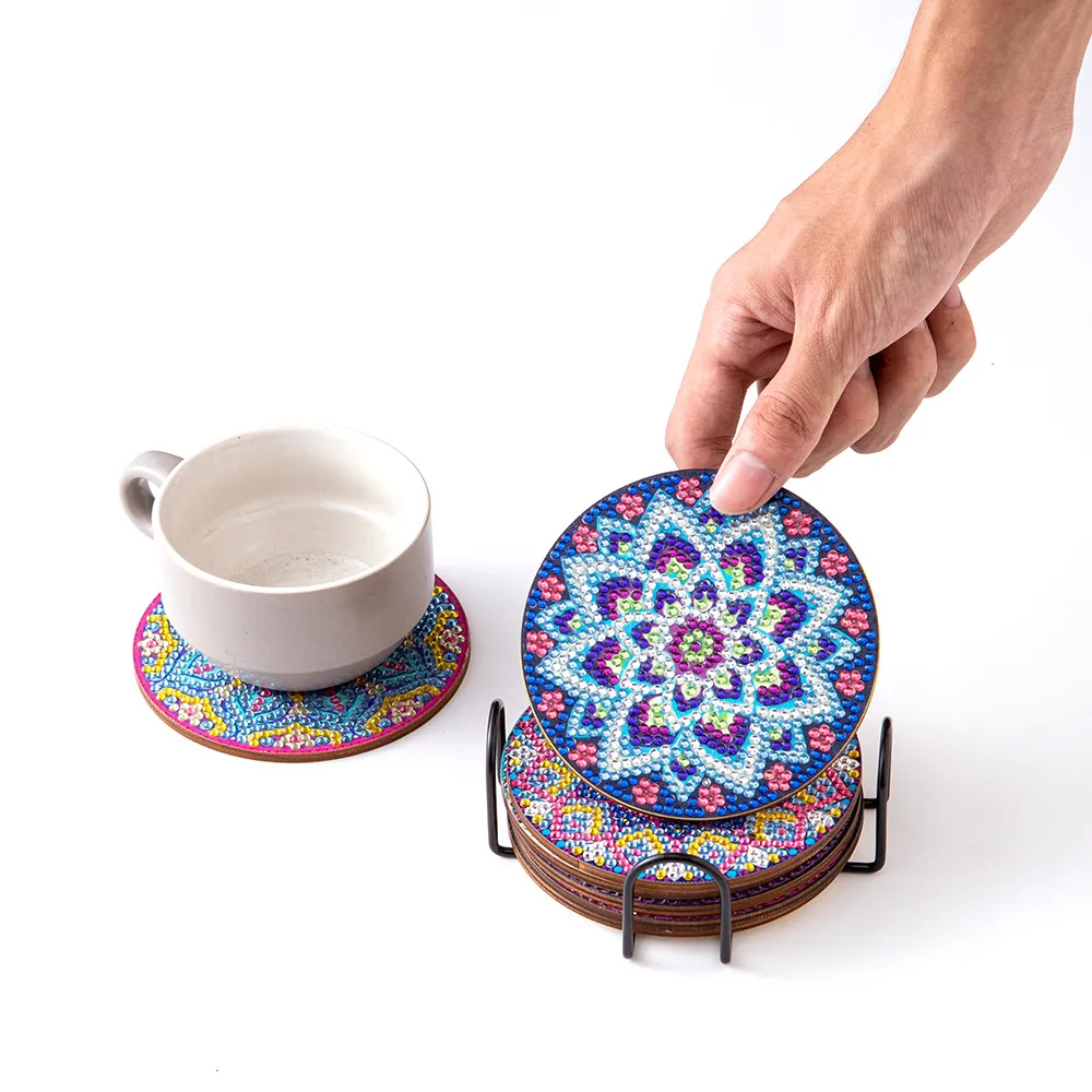 Ocean Series Diamond Painting Coaster Set Rhinestones Wooden Table Placemat With Rack For Home Decor Kitchen Accessories