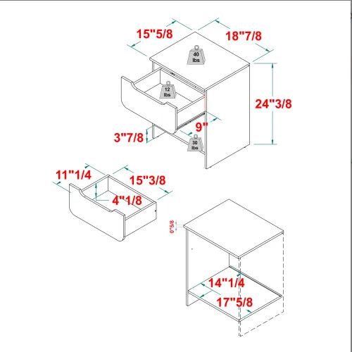 Product Name:Modern Minimalist 1-Drawer Nightstand with Cubby – Dark Grey