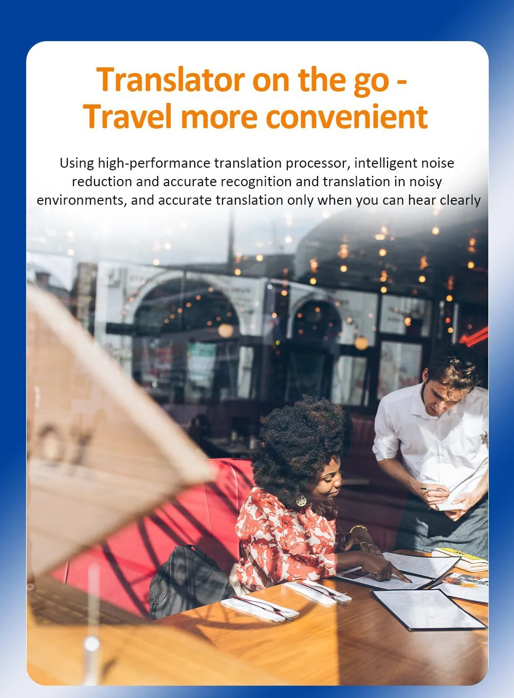 The device comes with a rechargeable battery that lasts for hours on a single charge, ensuring that it can support long translations on-the-go without the need to recharge frequently.