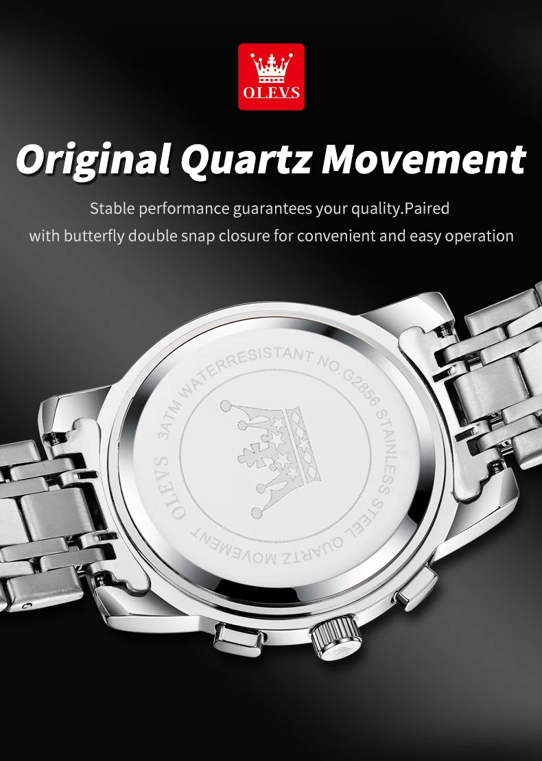 Equipped with a reliable quartz movement, the OLEVS watch provides precise and accurate timekeeping, making it a dependable accessory for