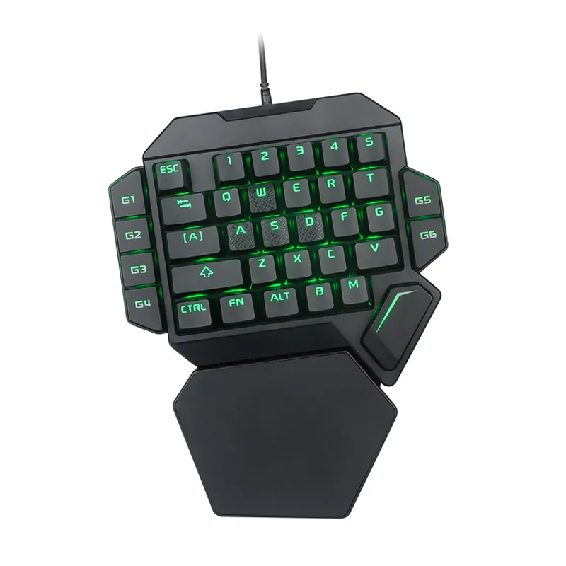 Take your gaming experience to the next level with the One-Handed Wired Mechanical Keyboard Green Axis Set. Designed for FPS and MOBA gamers, this left-hand small keyboard delivers quick, responsive keypresses with its green mechanical switches and a high-quality gaming mouse to complete the set. Whether you're dominating the battlefield or playing strategy games, this compact setup allows for maximum control and comfort during intense gaming sessions.