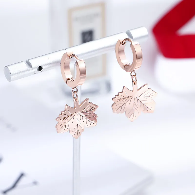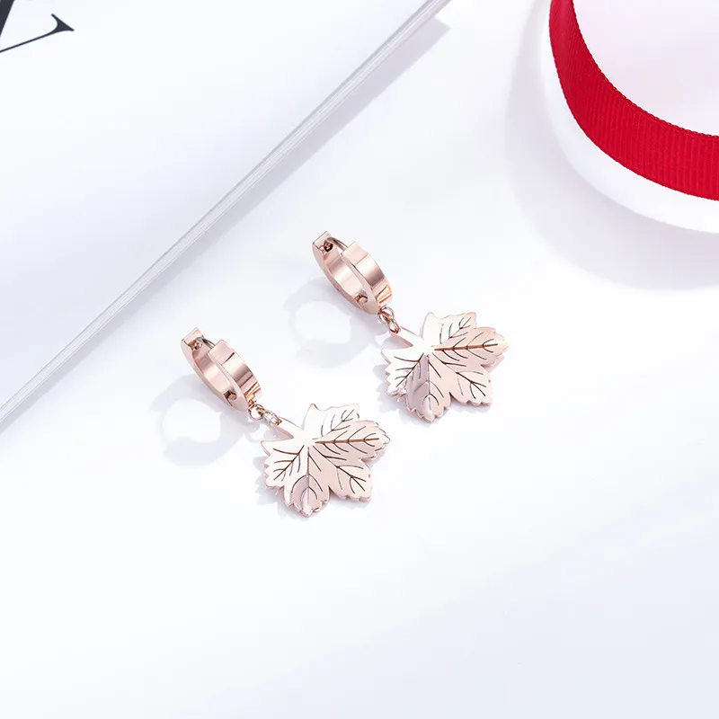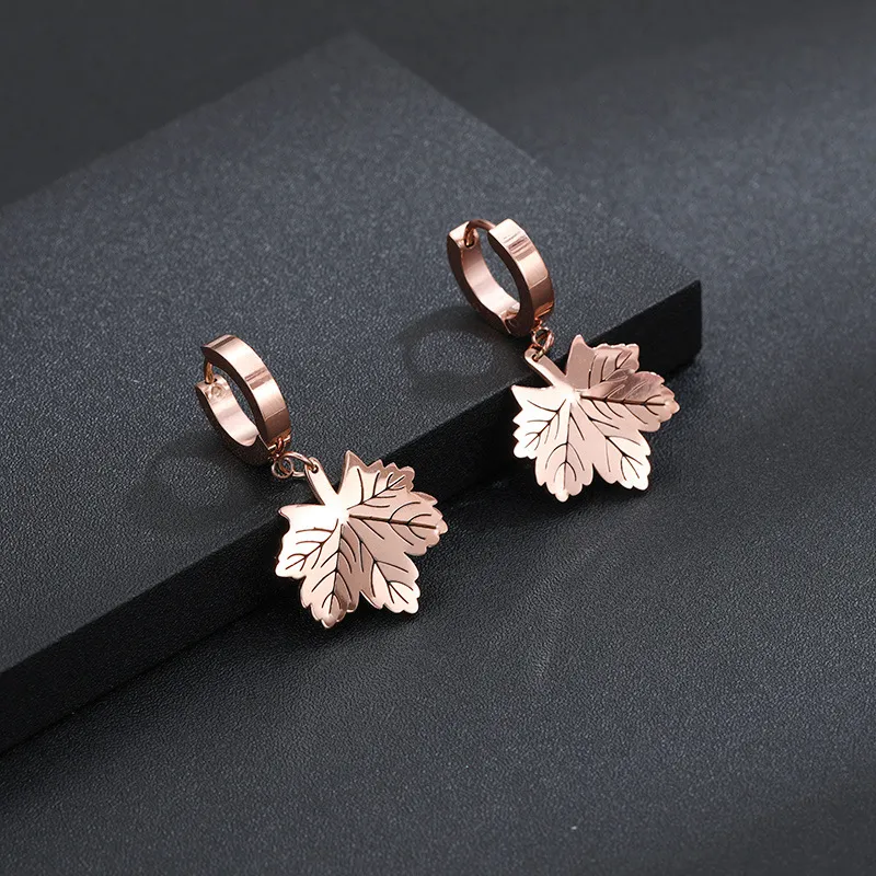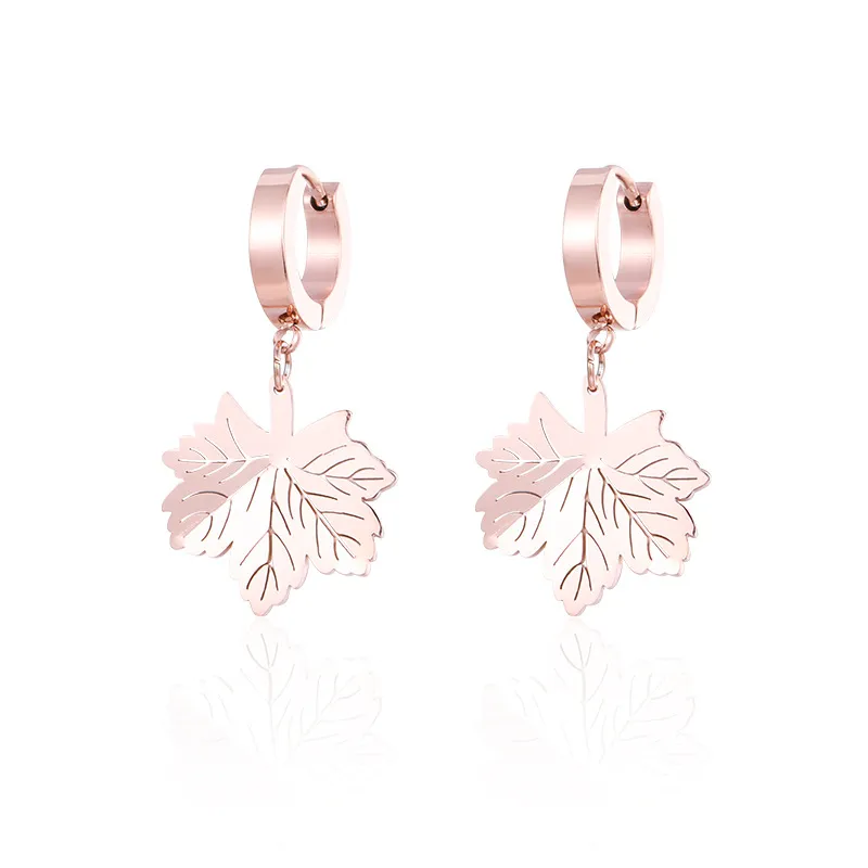 One Leaf Rich Earrings Rose Gold Plated Earrings
