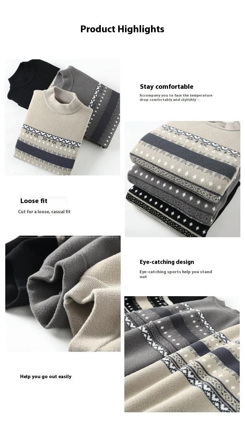 One-piece Velvet Sweater Men's Mock Neck Knitted Sweater Fashion Knitting Pullovers Men Autumn Winter Daily Casual Warm Pullover Sweaters Man