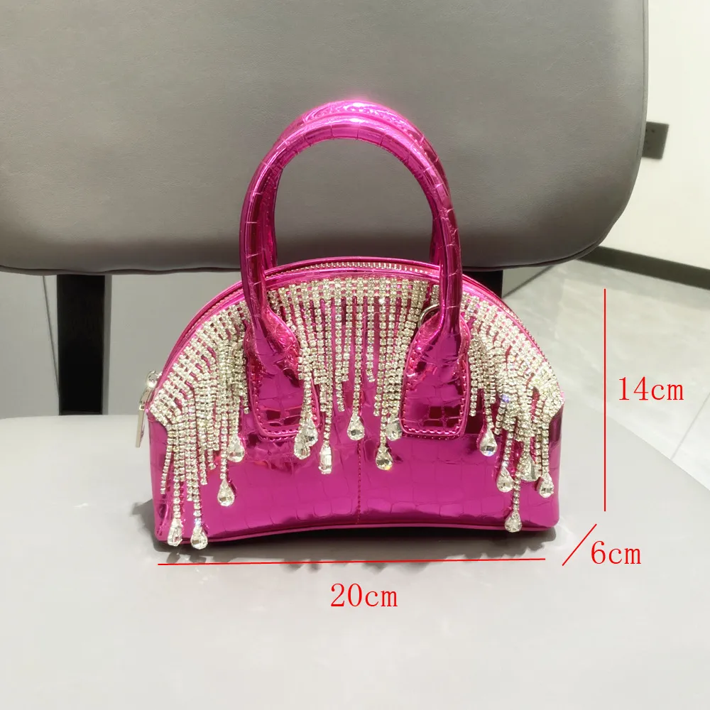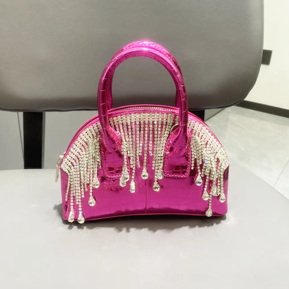 One-shoulder Crossbody Glossy Diamond Tassel Handbags