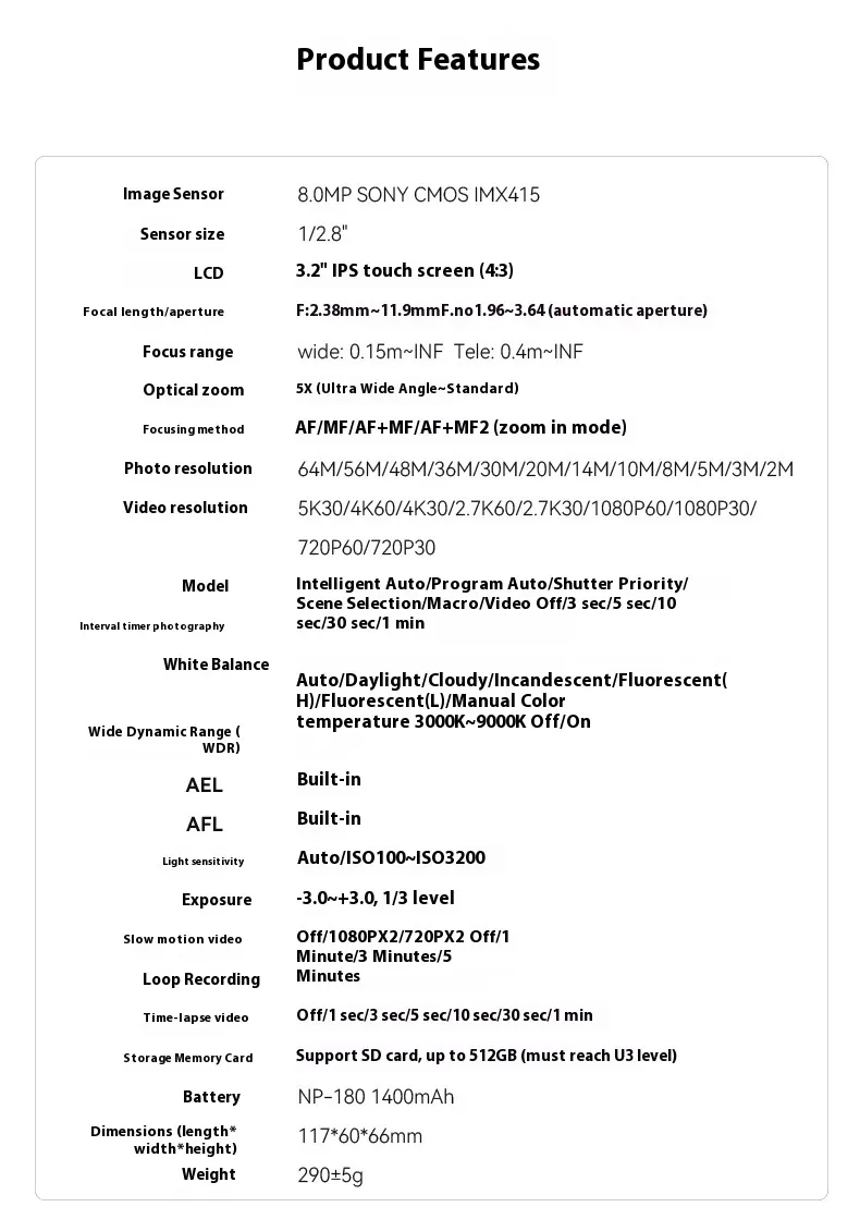 Designed with simplicity in mind, the camera features an intuitive interface that allows students to focus more on content creation and less on technicalities. The touch screen and easy-to-navigate menus make operation straightforward, even for beginners.