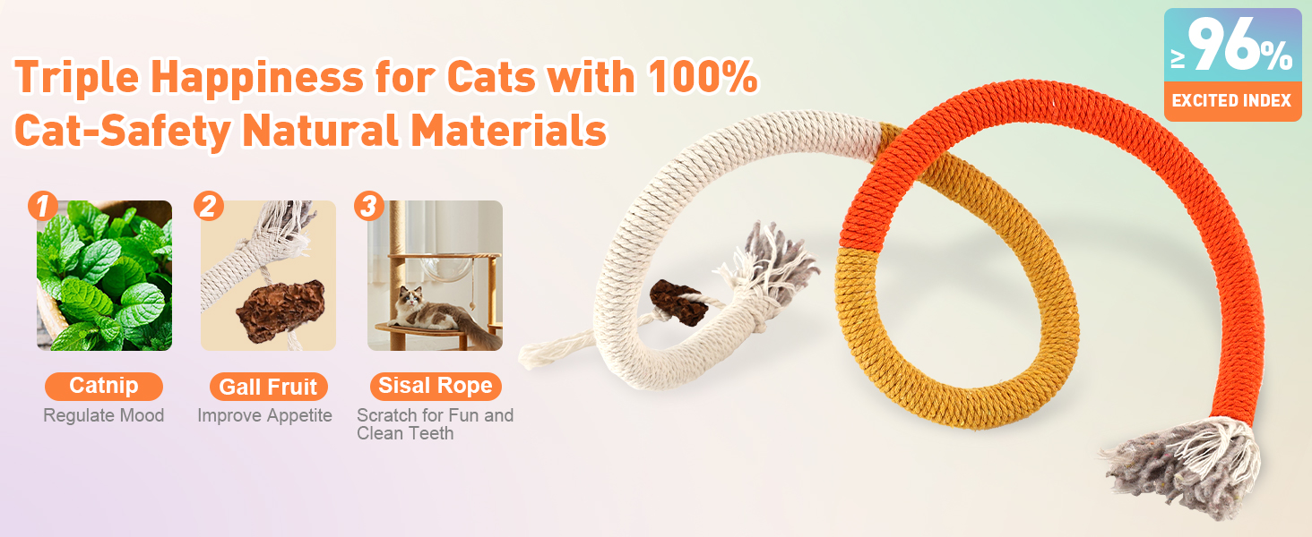 - Cat Toys for Bored Indoor Cats: This catnip rope are 100% hand-woven, and made of natural cotton, sisal material,without wire inside.Designed to withstand aggressive chewing,it's a durable option suitable for even the most vigorous chewers among kittens