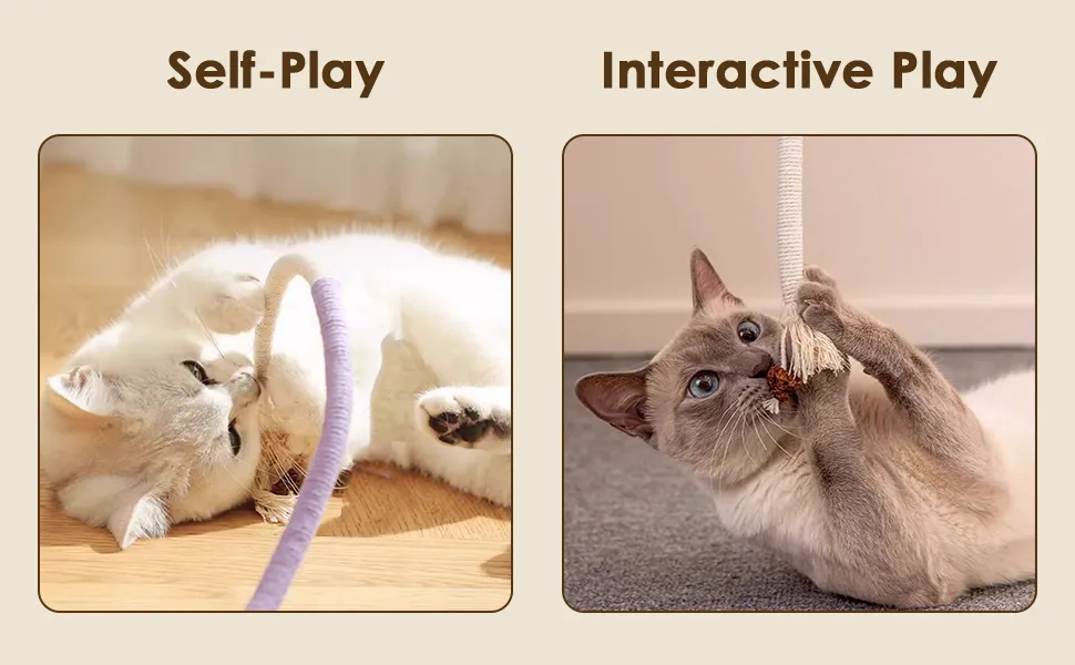 - Interactive and Self Play: Our cat rope toy serves multiple purposes. It serves as an interactive toy for playing with your cat, enhancing the relationship between you and your furry friend. Additionally, it also works as a self-play toy, keeping your cat entertained even when you're not available to play with them