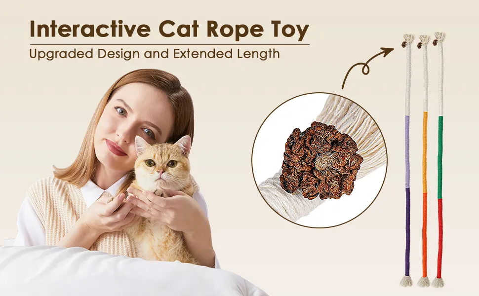 - Upgraded Design and Length: Our cotton rope cat toy comes with a silvervine fruit, which can better attract the cat's attention and is beneficial for their health. And our cat's bite rope is 27.6 inches long, which is 4 inches longer than others. Our cat rope is more worth your choice!