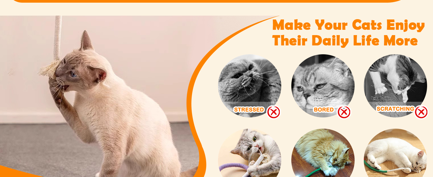 - 【Regulate Mood Kitty Toys】Watch your cat's curiosity come alive with our interactive rope cat toy, complete with a dangling gall fruit at the end. Stimulating your cat's natural hunting instincts, this toy provides endless amusement and promotes overall well-being.