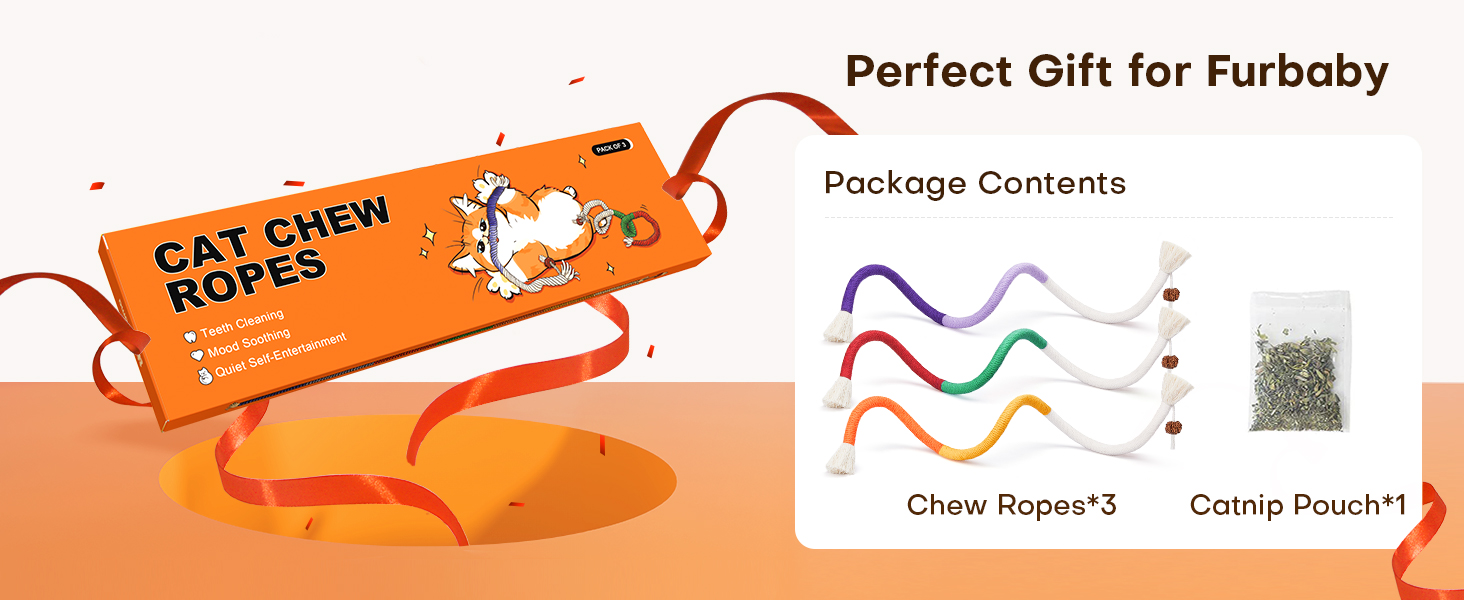 - Gift for Cats: These cat chew toys using organic cotton rope, are safe for all cats. which are bright in colors, attracting the attention of your feline friends.Great gift choice for cat birthday Halloween Christmas Thanksgiving