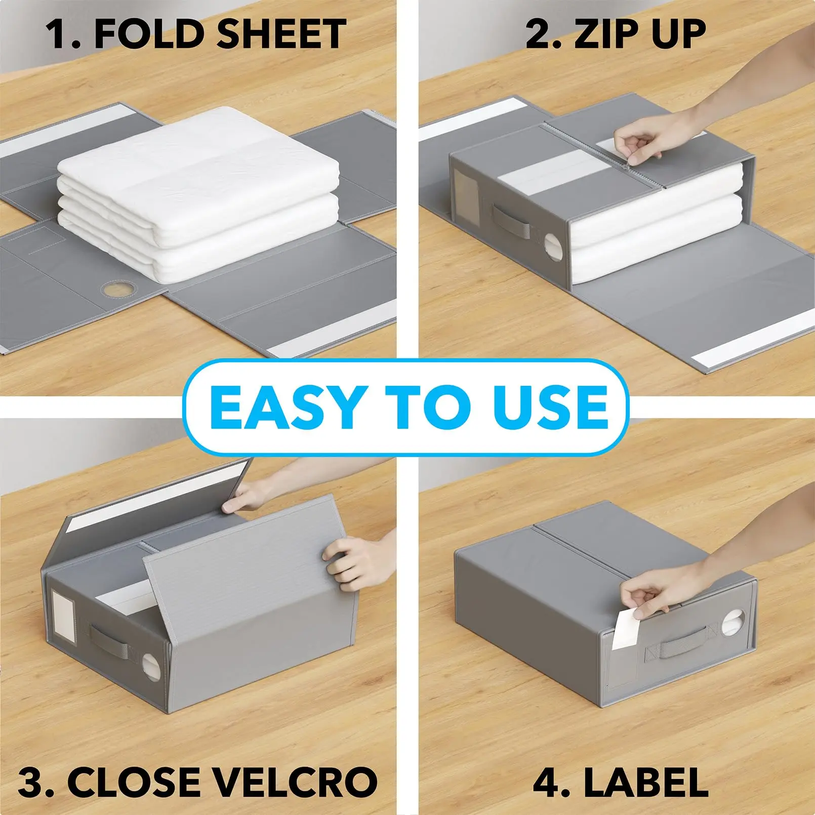 💬 Living in a small space? Maximize every inch with our folding sheet organizers. Store your linens under the bed, in a closet, or on a shelf—neatly and compactly!