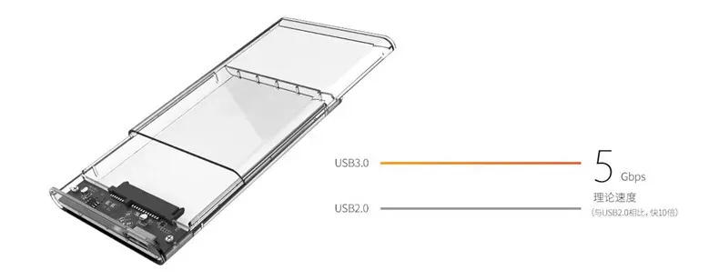 Using two high-speed interface, USB3.0 theoretical speed of 5Gbps, is about 10 times the speed of USB2.0, SATA3.0 theoretical speed of