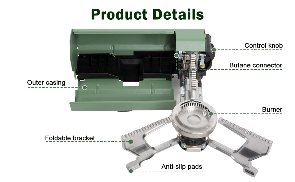 - [Durable] Our portable butane stove is designed with aluminum alloy and stainless steel. The exquisite craftsmanship enables it to withstand the test of high temperature and has a long service life. The stove is lightweight and easy to carry
