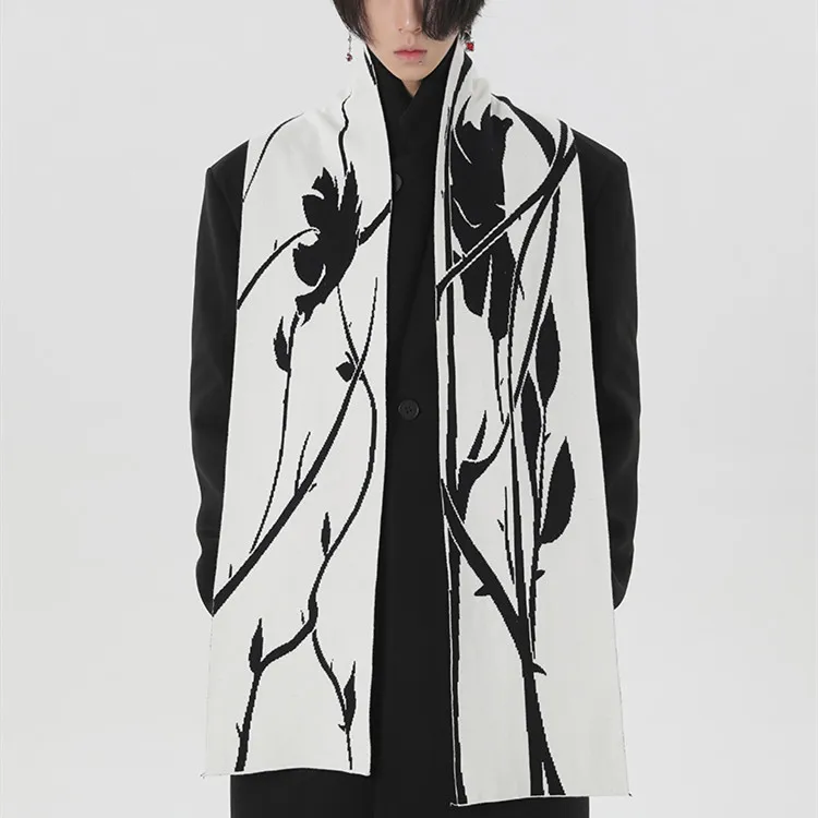 Original Hand-painted Black And White Thorn Rose Winter Neck Warmer Dehaired Angora Couple Scarf