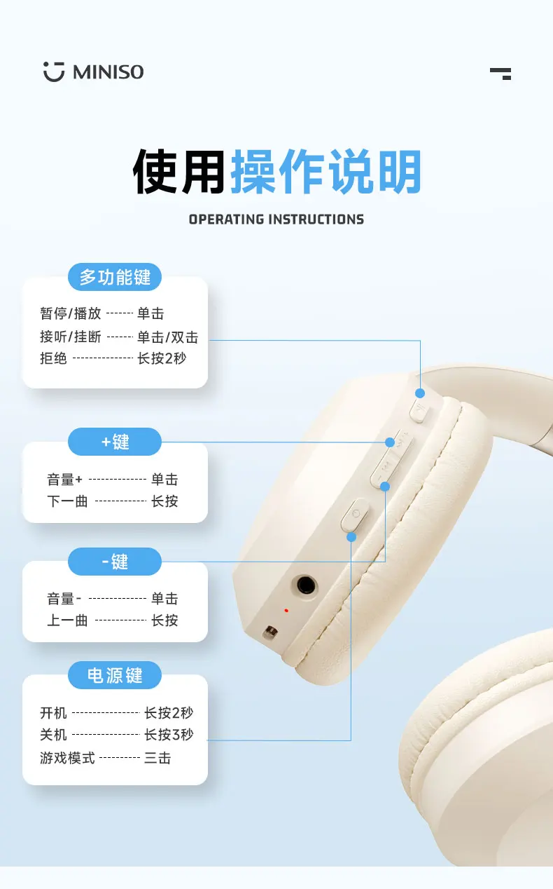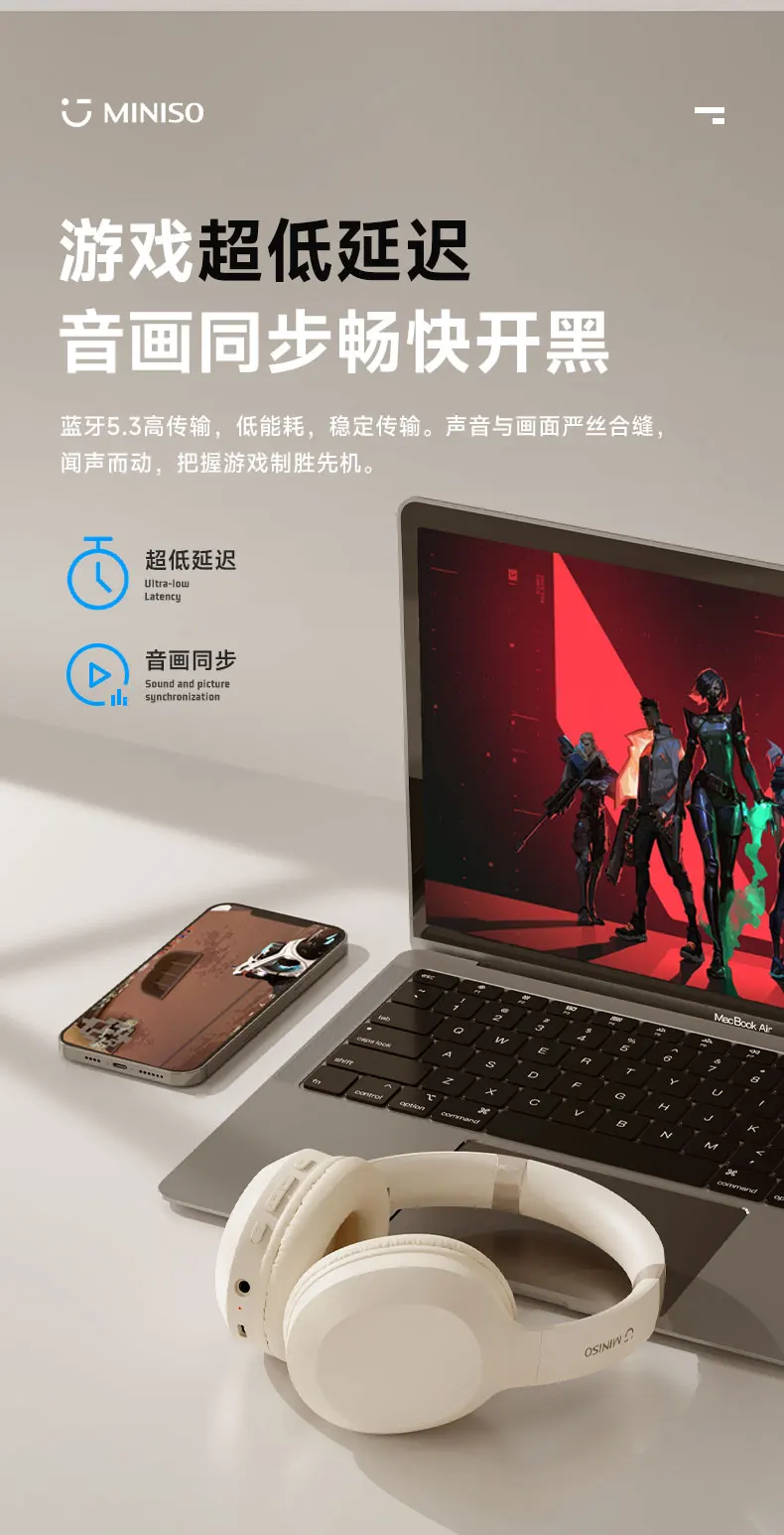 The MINISO MCD02 Bluetooth V5.3 Headset combines advanced audio technology with a sleek, portable design, making it an ideal choice for those who demand high-quality sound and convenience on the go. With its HIFI sound, low latency, and portable folding capabilities, the MCD02 is perfect for travel, outdoor adventures, and everyday use. This 2023 new model offers a modern listening experience that caters to audiophiles and casual listeners alike.