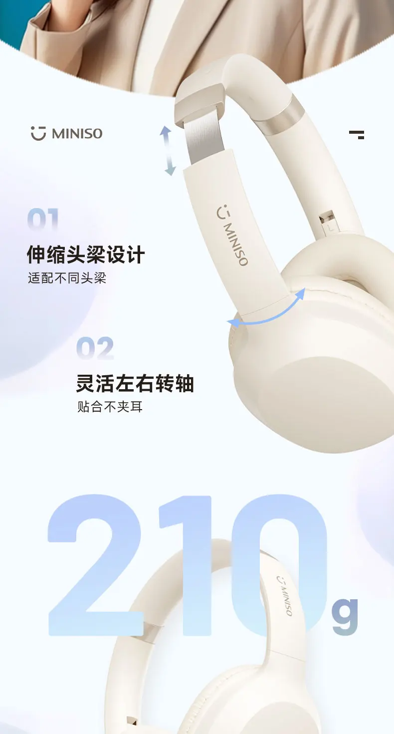 The MINISO MCD02 Bluetooth V5.3 Headset offers a range of benefits for users seeking high-quality audio and portability. The HIFI sound and low latency ensure an exceptional listening experience, while the foldable design makes it easy to take the headphones wherever you go. The comfortable fit and long battery life add to the convenience, making the MCD02 a versatile choice for everyday use and travel.