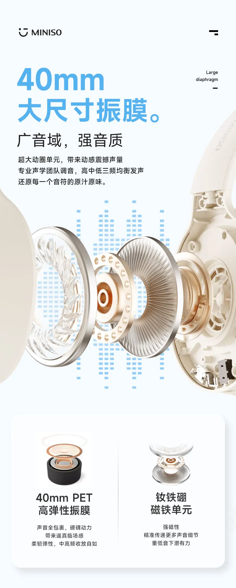 Original MINISO MCD02 Bluetooth V5.3 HIFI Sound Headset Low Latency, Portable Folding Wireless Headphones, 2023 New