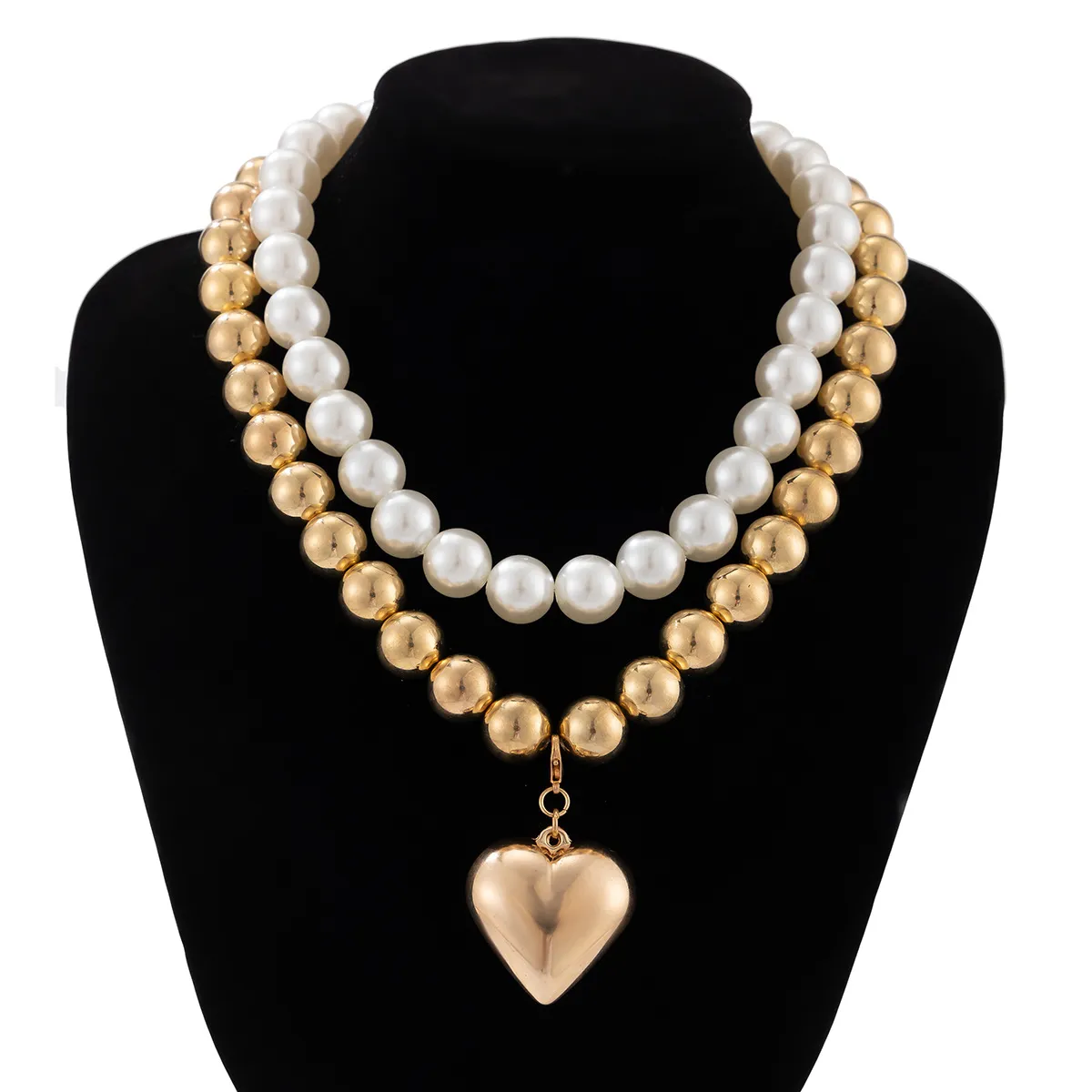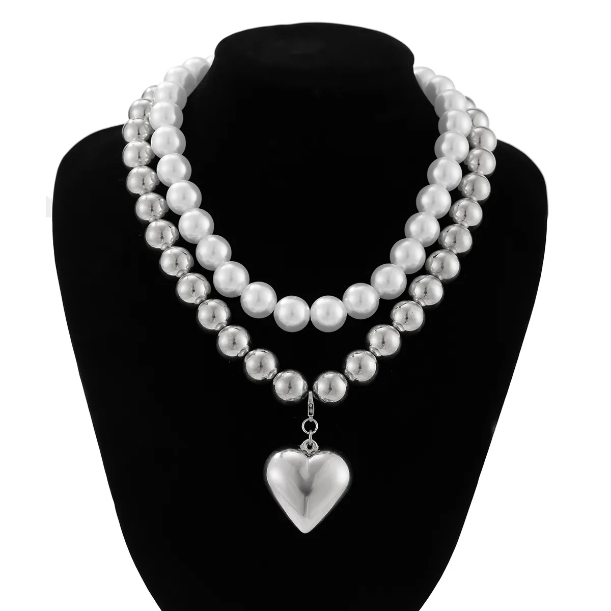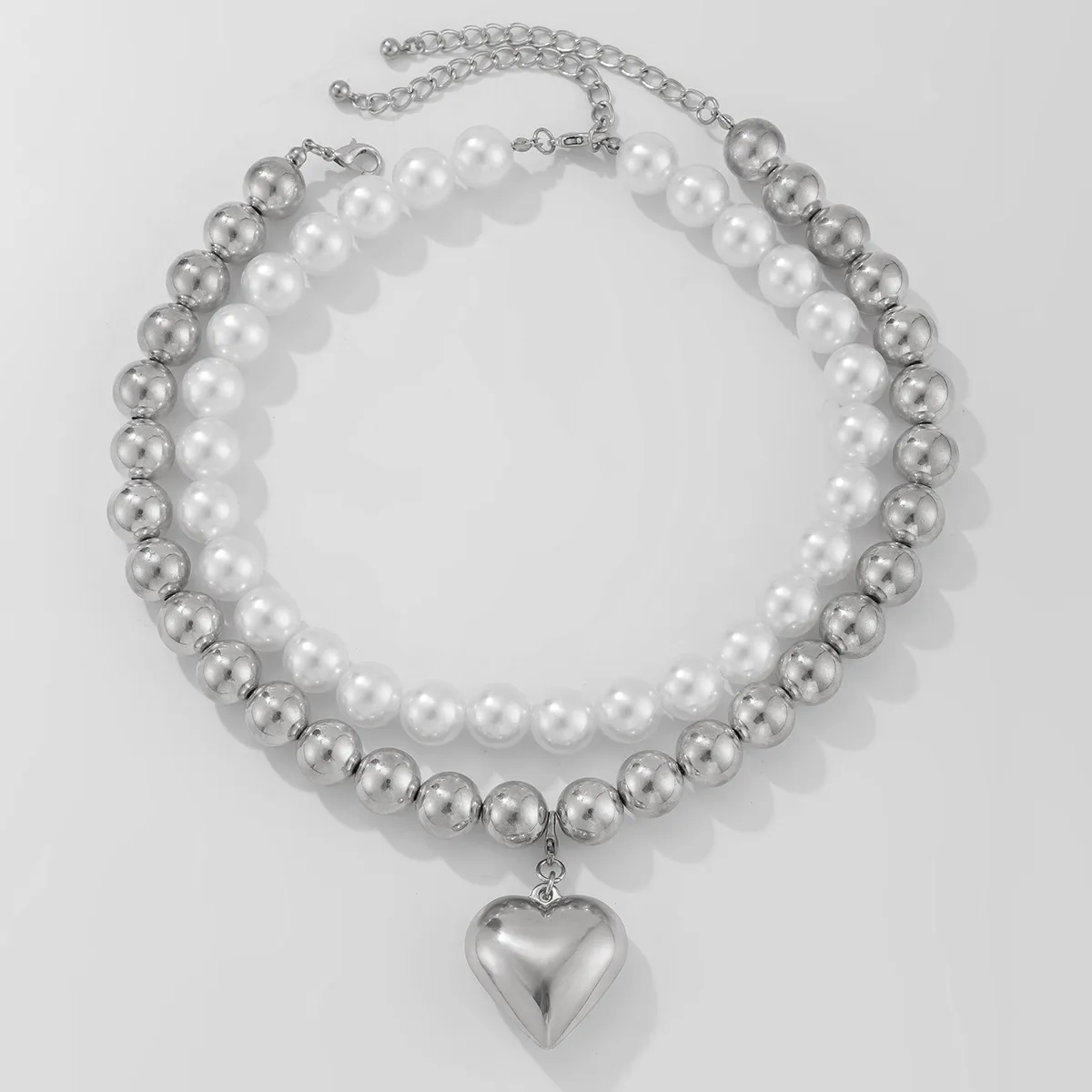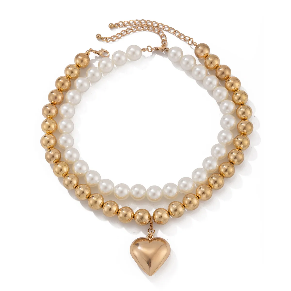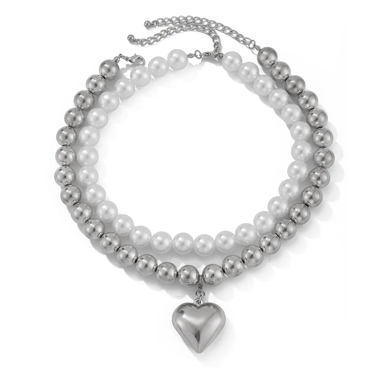 Ornament Pearl Heart Clavicle Chain Beaded Heart-shaped