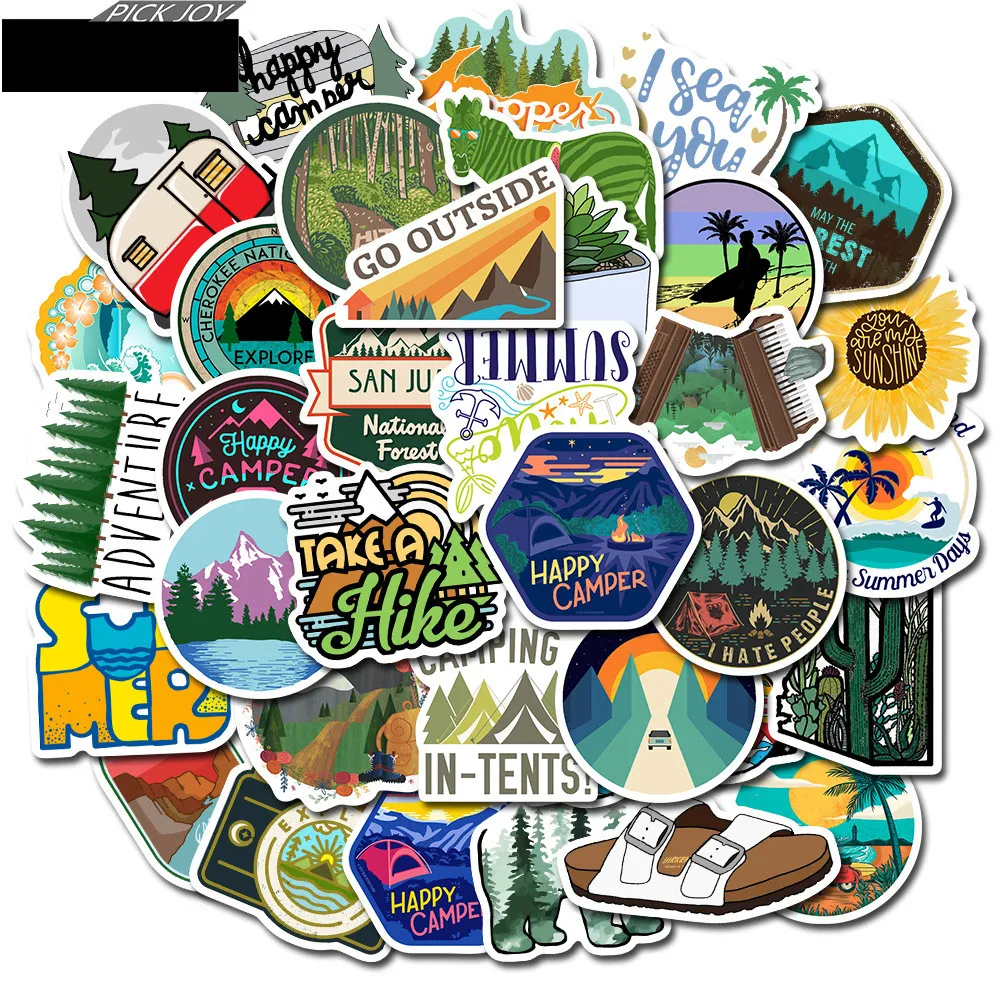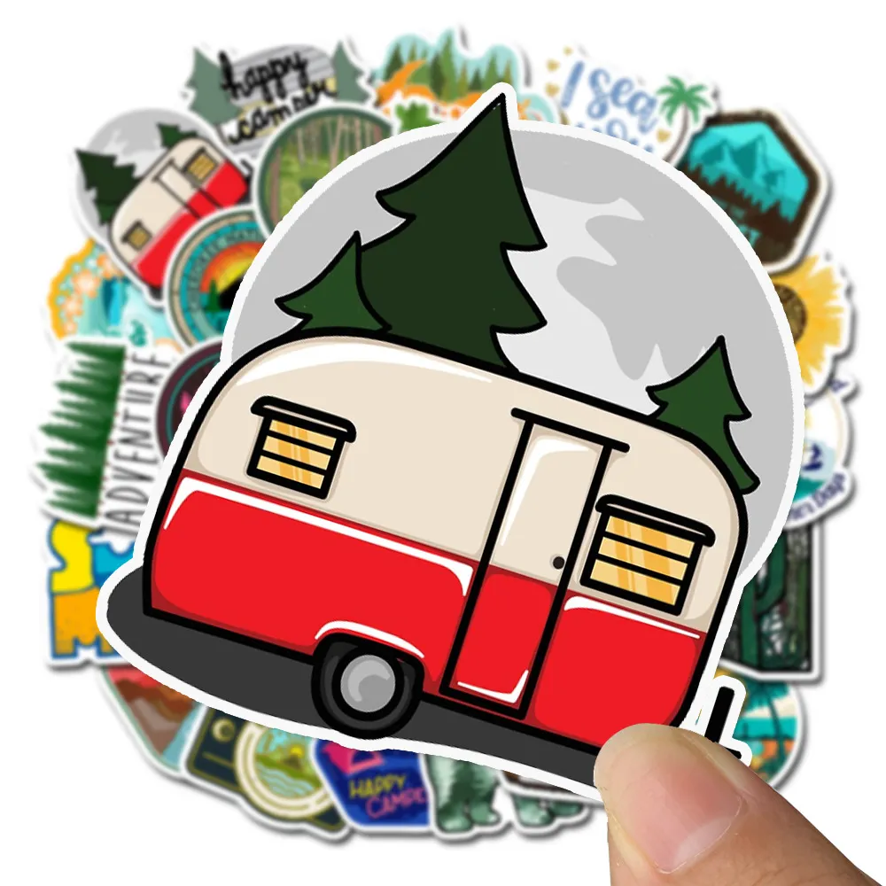 Perfect for decorating camping gear, bikes, skateboards, laptops, water bottles, car bumpers, or phone cases. These stickers are made for adventure and self-expression.