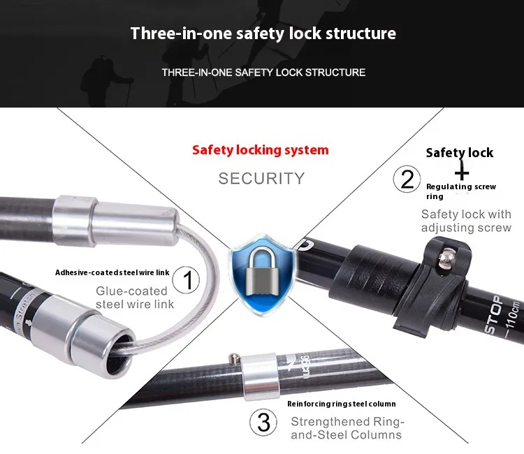 The Ultralight Retractable Folding Hiking Alpenstock features a folding structure that collapses into a compact size, making it easy to pack and carry. When folded, it fits neatly into backpacks or travel bags, making it perfect for hikers, backpackers, and travelers who need portable gear. This convenient folding design allows you to store the alpenstock when not in use, keeping it ready for your next adventure.
