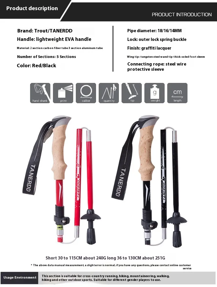 Outdoor Alpenstock Ultralight Retractable Folding Hiking