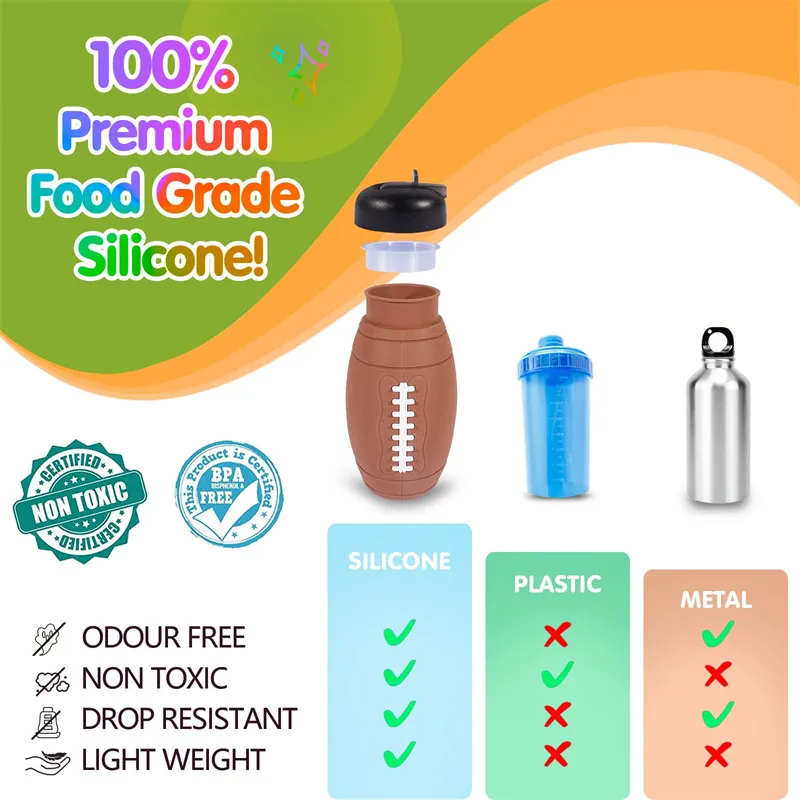 3.【Original Design】Overall water bottle anti-collision design, brown rugby ball-shaped water bottle, a sense of creativity.