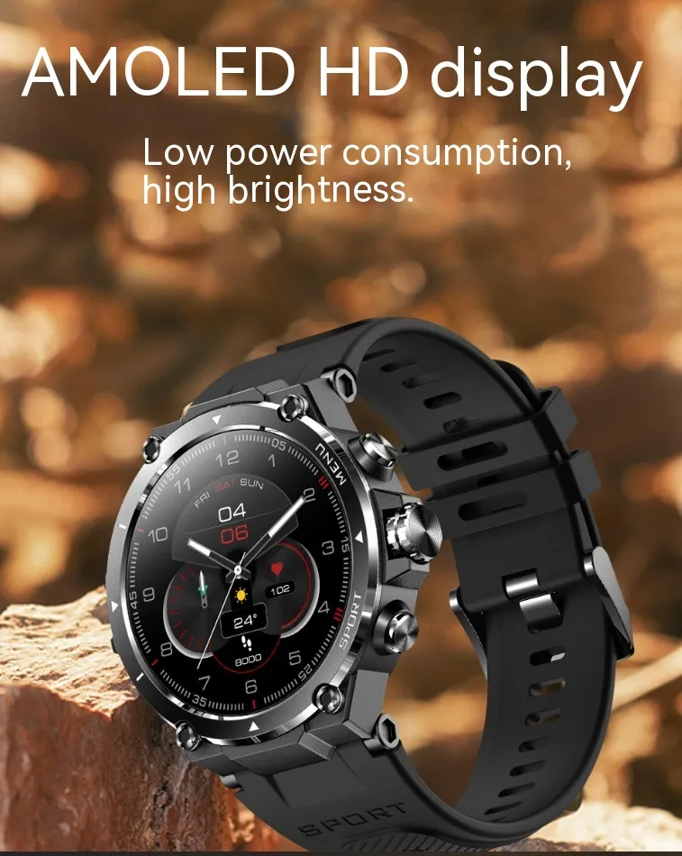 Built for an active lifestyle, the smartwatch is water-resistant with an IP68 rating, making it perfect for outdoor activities, including swimming, running in the rain, or working out in wet conditions. The durable design can withstand everyday bumps and knocks, ensuring reliable performance in all environments.