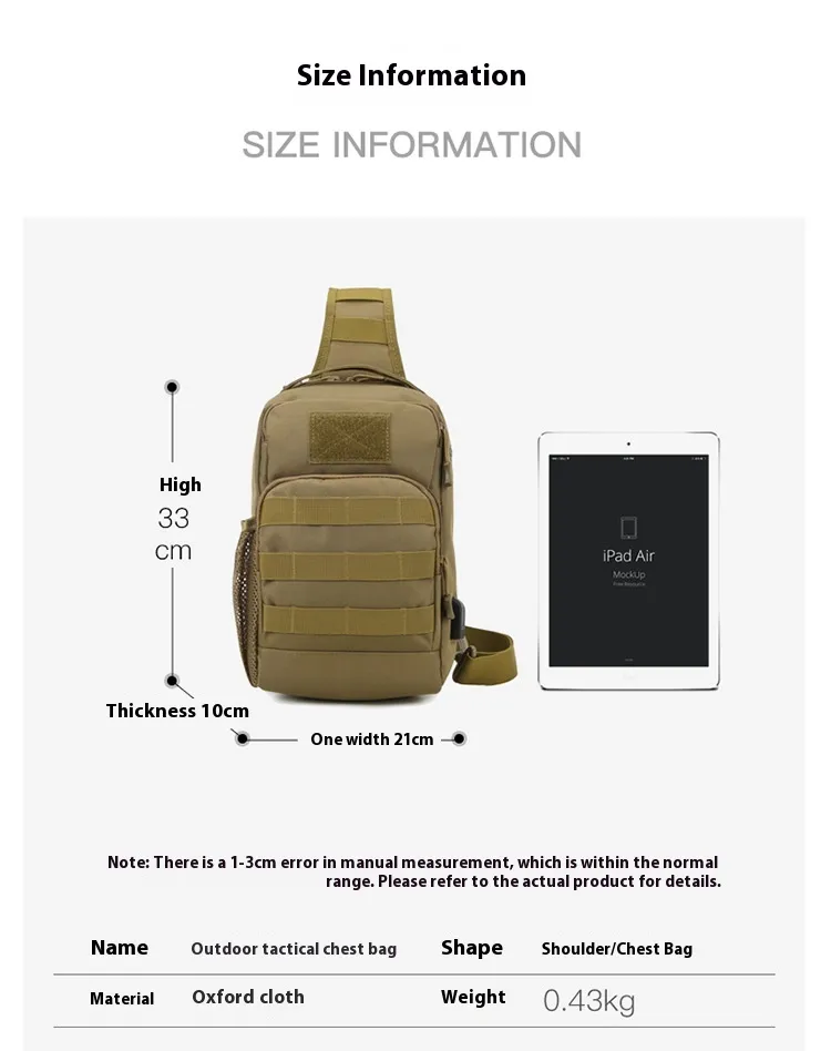 Looking for a durable and well-organized bag for tactical operations? Our Outdoor Lure Camouflage Large Capacity Multi-functional Men's Shoulder Crossbody Tactical Chest Bag is ideal for military personnel, security professionals, and survivalists.