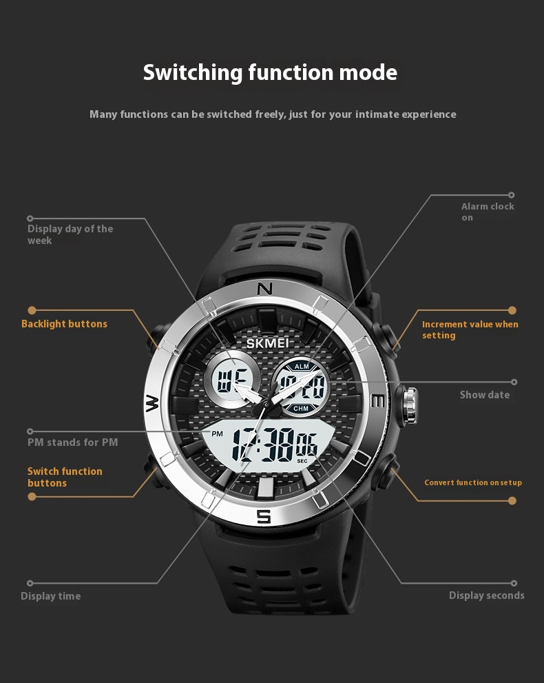 Multifunctional Design: This watch offers multiple features including time display, alarm, stopwatch, countdown timer, and