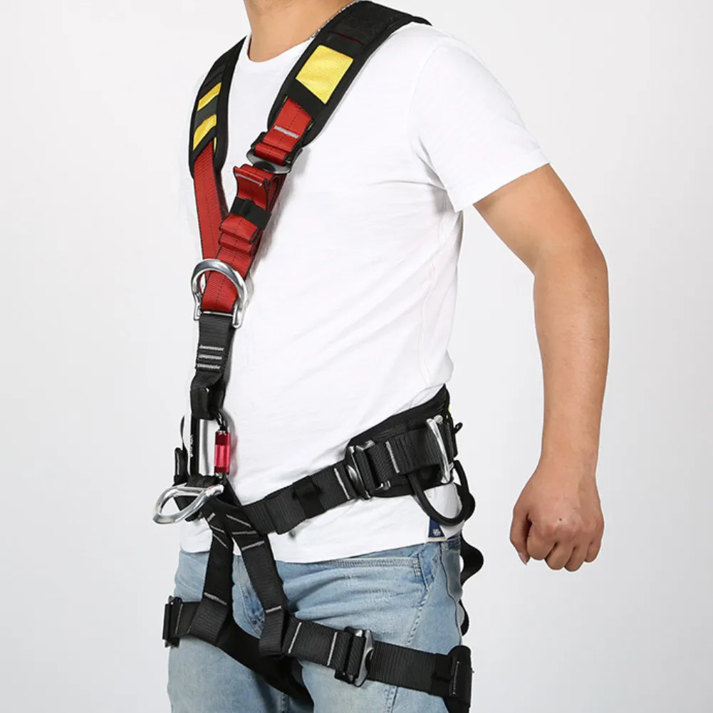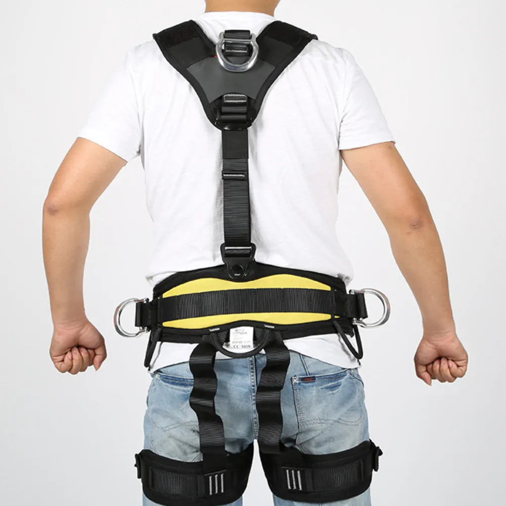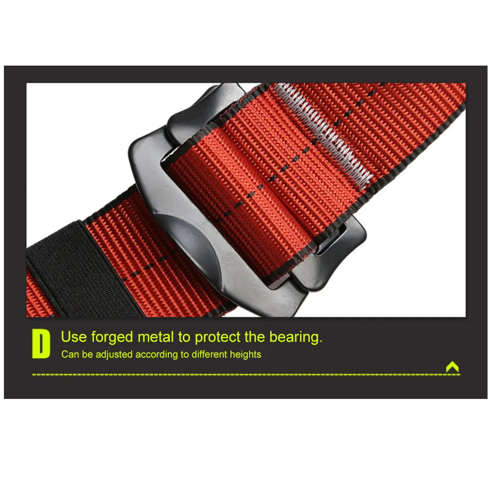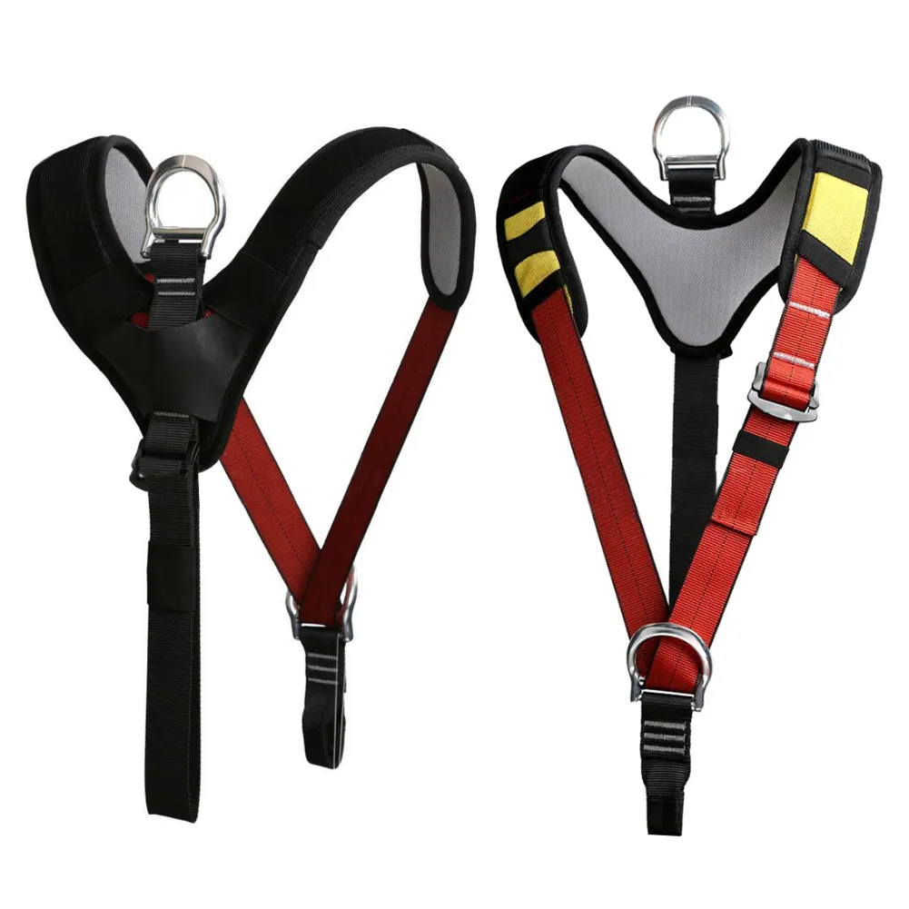 The full-body harness is designed for comfort and security, with adjustable straps to ensure a snug fit for various body sizes. Padded support minimizes strain during prolonged use.