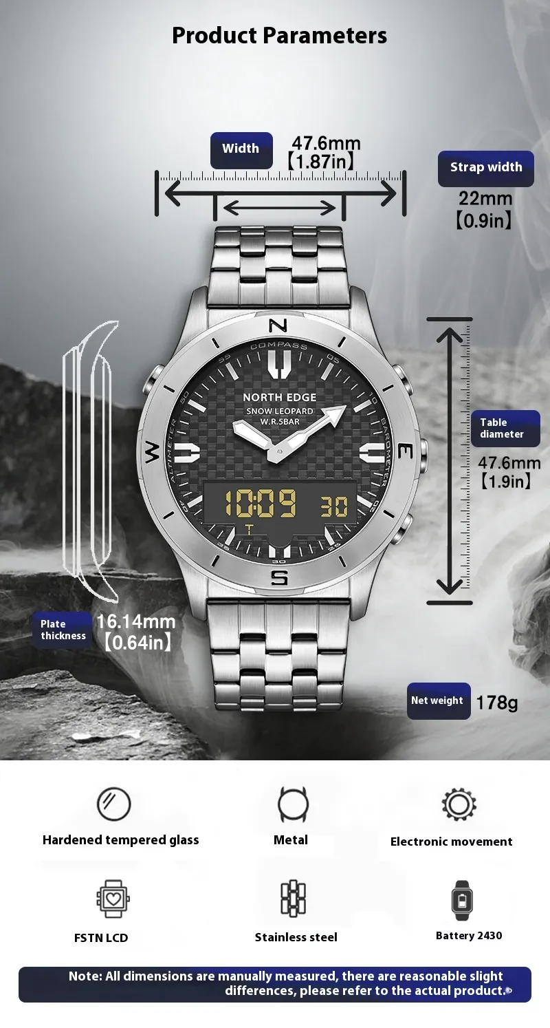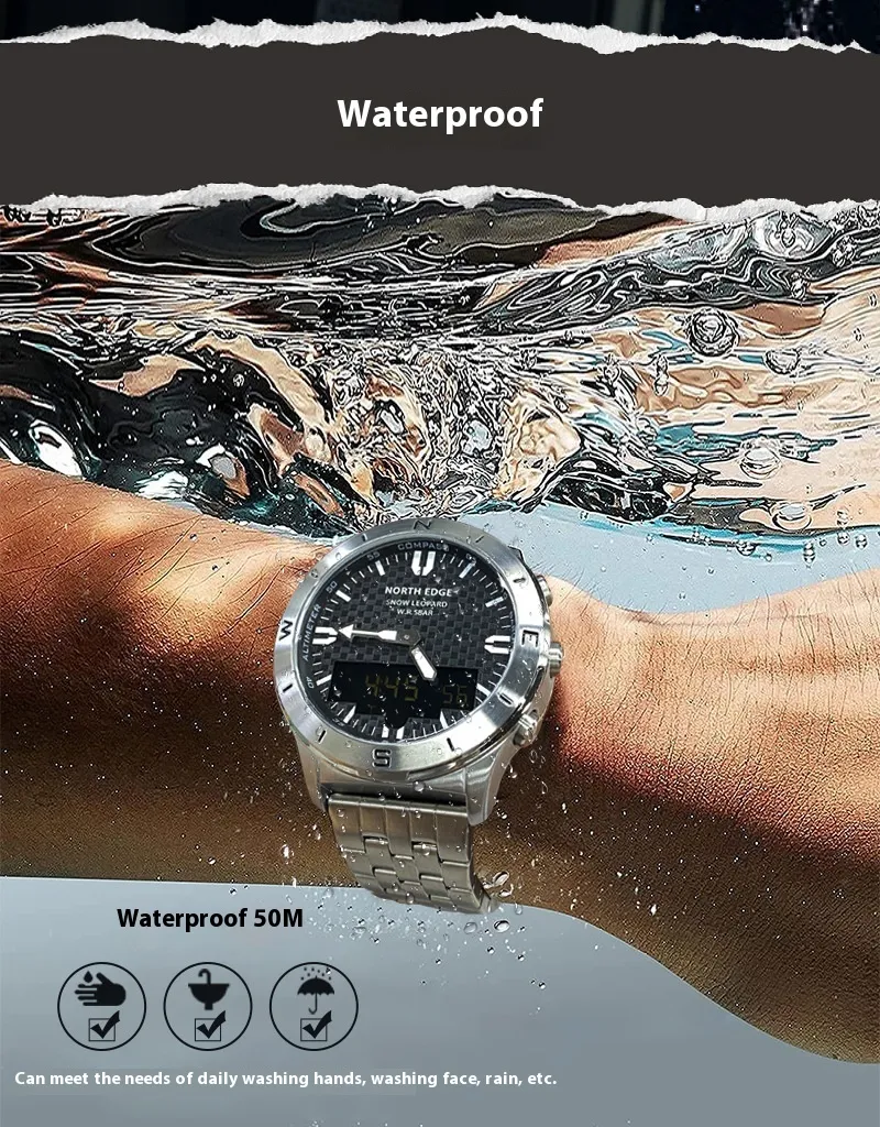 Engineered for harsh environments, the watch boasts IP67 waterproofing, shock resistance, and a durable case that can withstand dust, mud, and rain. Stay informed with its altimeter, barometer, compass, and height guide, perfect for tracking elevation and weather shifts during mountain hikes or backcountry treks.