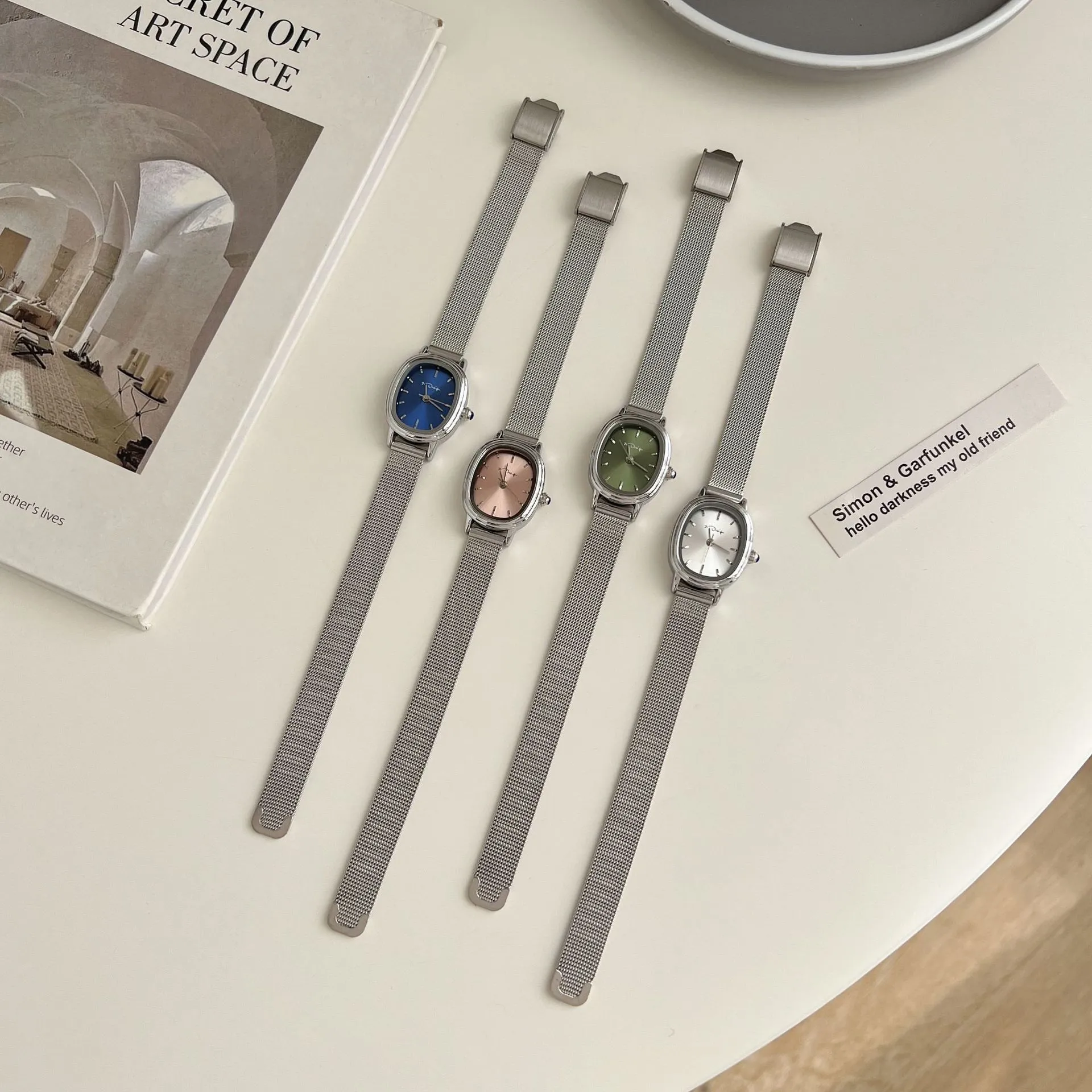 Oval Small Dial Niche High-grade Simple Waterproof Women's Mesh Strap Watch