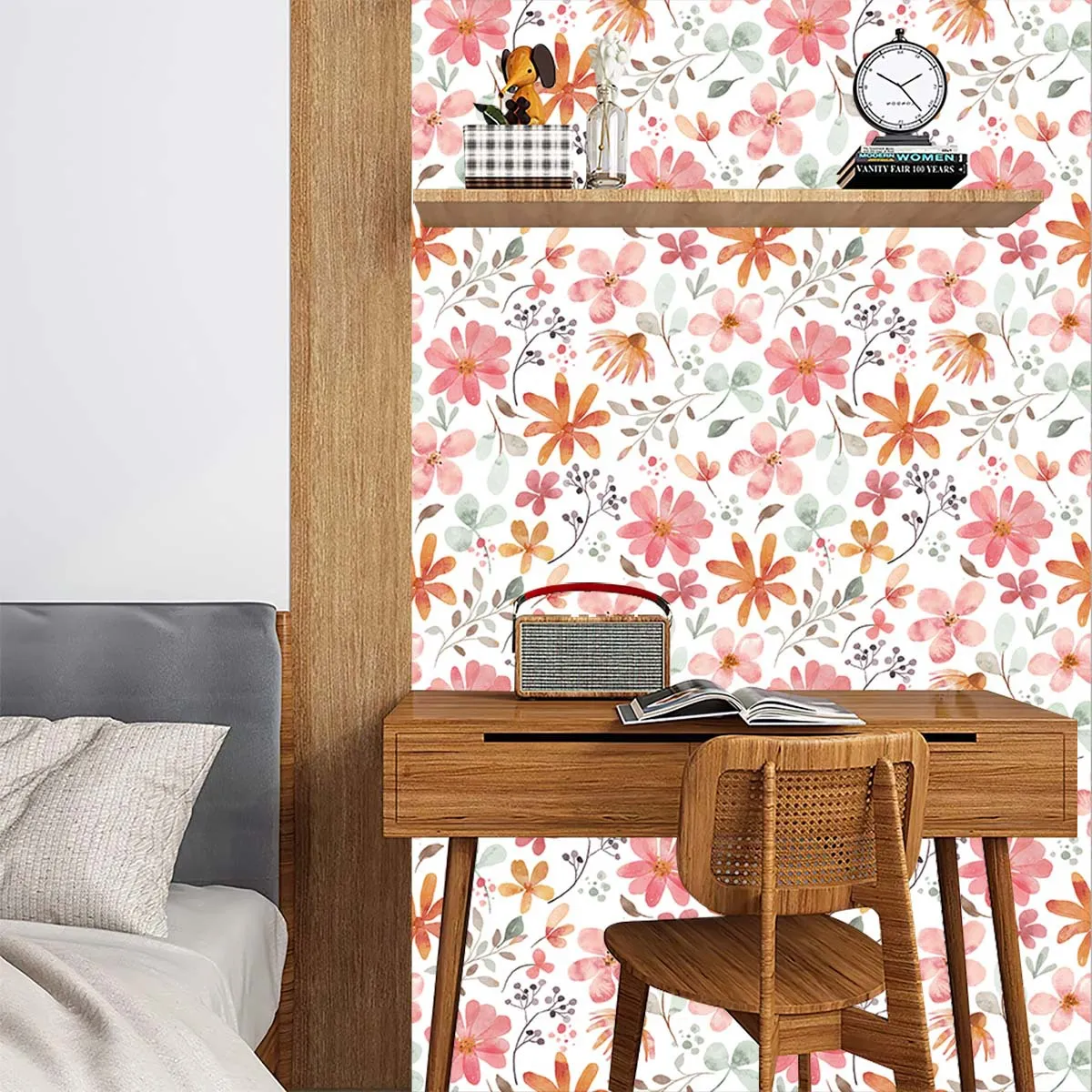 Pair with Neutral Furniture: If you’ve chosen a bold floral wallpaper, balance the space by pairing it with neutral
