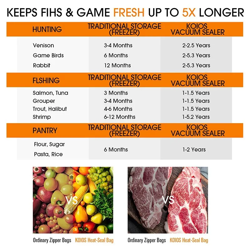 - Multi-Layer Sealing Technology: Ensures an airtight seal every time, keeping moisture, oxygen, and bacteria out.