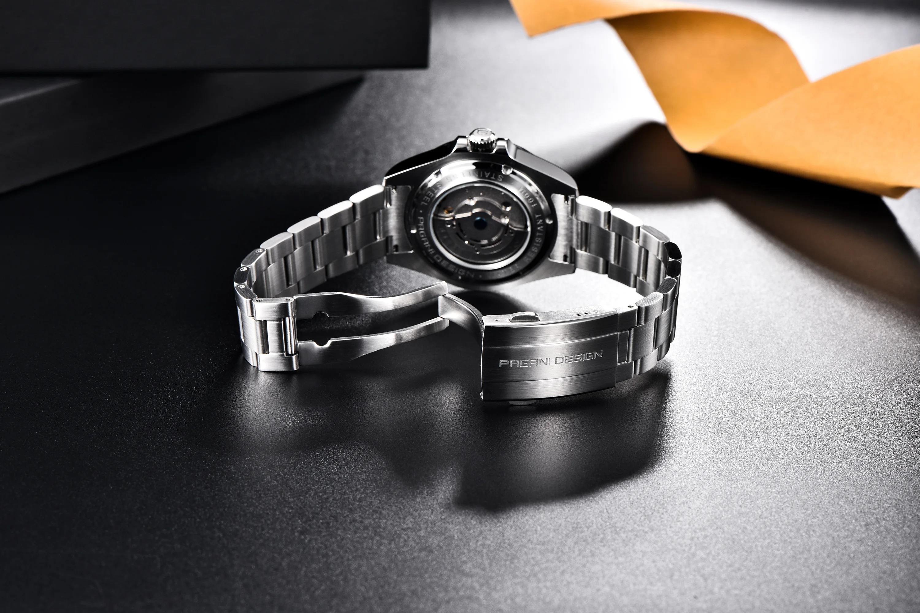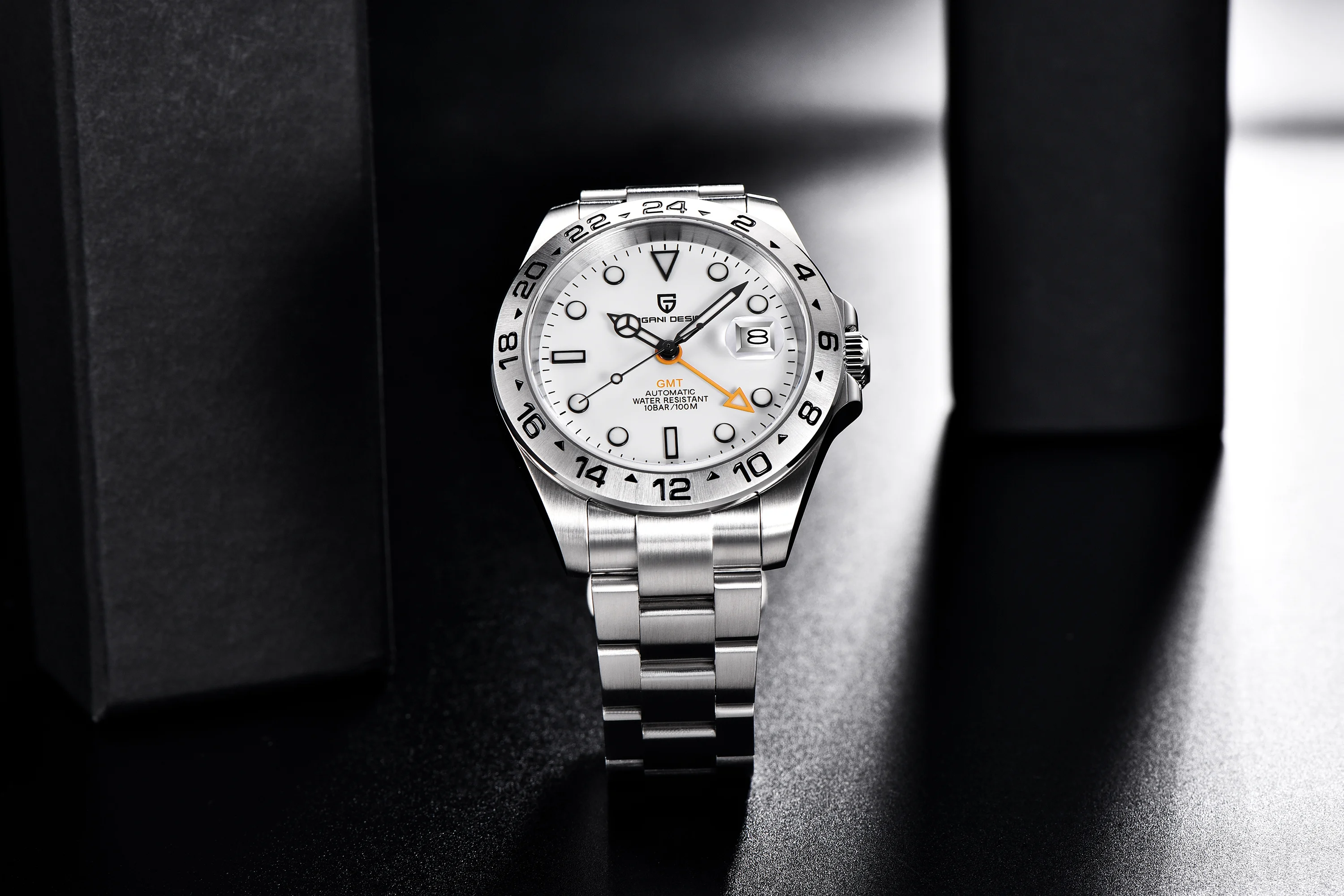 The 2024 PAGANI Design Men's Automatic Mechanical GMT Watch is a stunning blend of craftsmanship and innovation. With its sleek stainless steel build, sapphire crystal, and GMT functionality, this watch is designed for modern men who value elegance and reliability. Whether for professional wear or casual outings, this waterproof timepiece elevates your style and ensures accurate timekeeping.