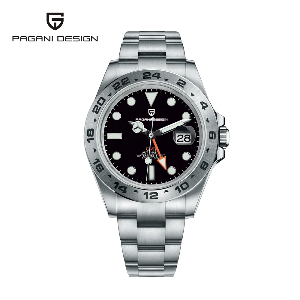 The 2024 PAGANI Design Men's Automatic Mechanical GMT Watch is a stunning blend of craftsmanship and innovation. With its sleek stainless steel build, sapphire crystal, and GMT functionality, this watch is designed for modern men who value elegance and reliability. Whether for professional wear or casual outings, this waterproof timepiece elevates your style and ensures accurate timekeeping.