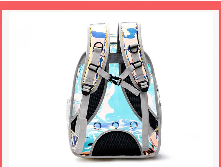 Let the backpack shine by pairing it with solid-colored outfits that highlight its cosmic and paw-inspired design.