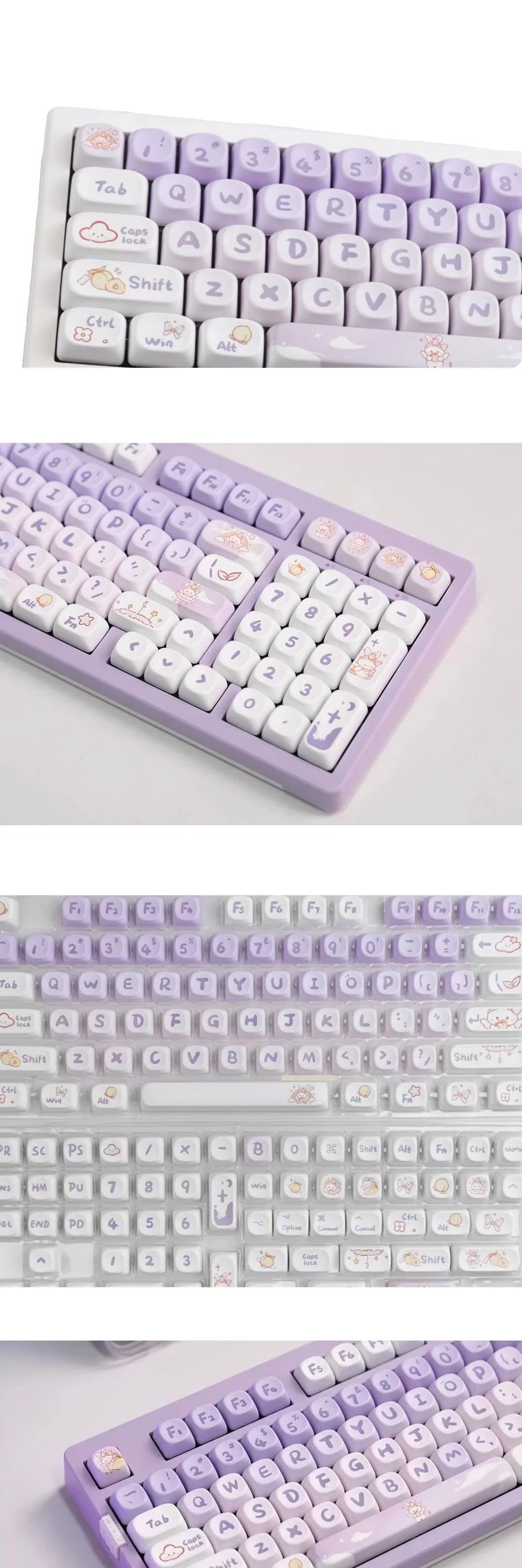 Whether you're a gamer who enjoys a bit of flair in your setup, a typist who wants a comfortable and fun typing experience, or a keycap collector looking to add a unique design to your collection, the PBT Gradient Purple Rabbit Key Cap Coeco offers both practicality and aesthetics. The keycaps are designed to enhance your typing or gaming performance while adding personality to your workspace.