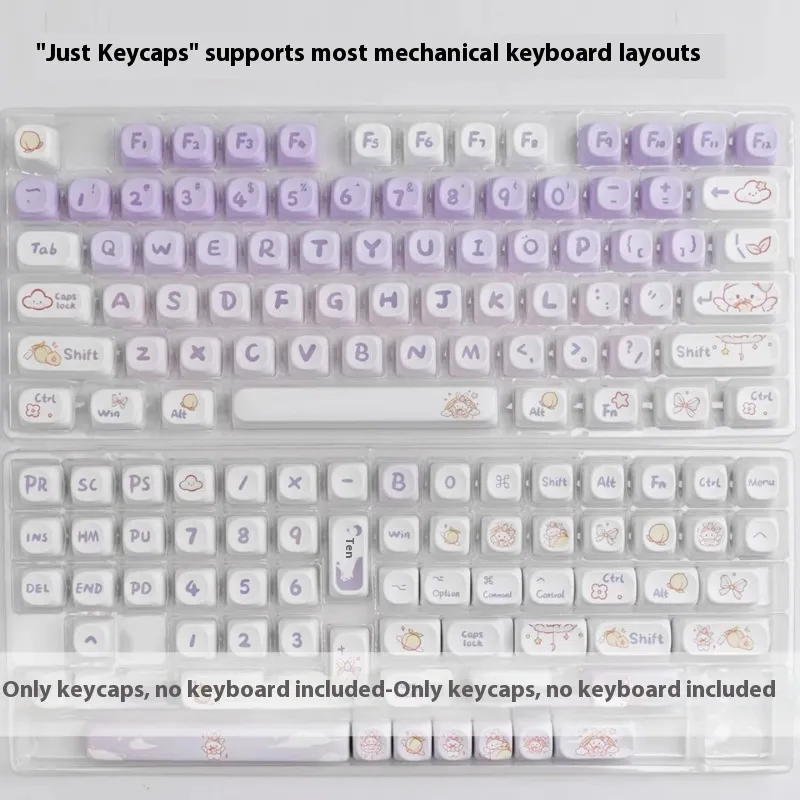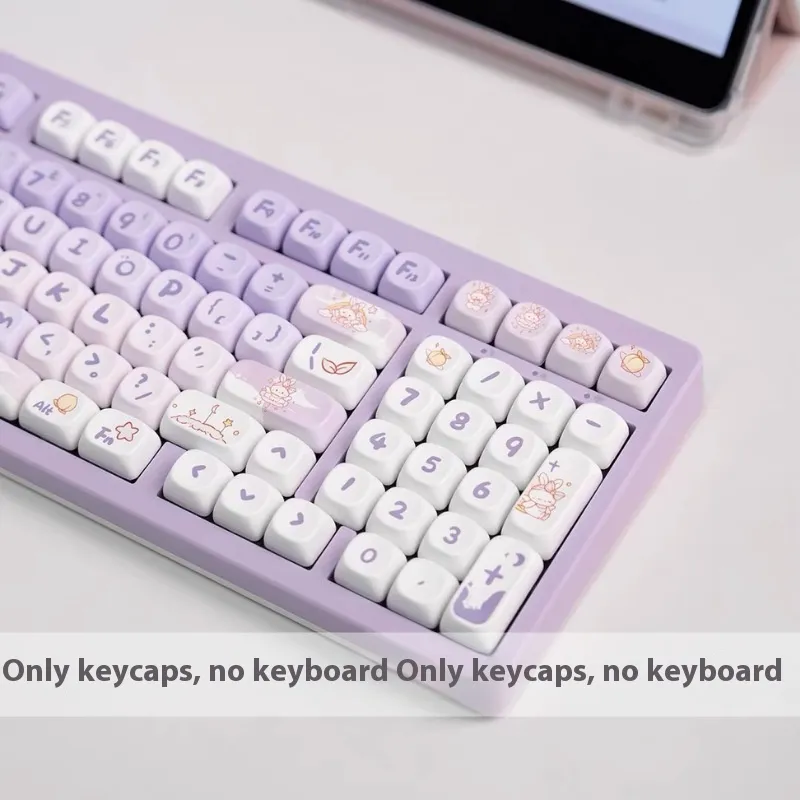These keycaps are not just for looks—they are fully customizable to fit your mechanical keyboard. The Coeco branding ensures that these keycaps are compatible with most MX-style switches, offering you the flexibility to personalize your setup. You can mix and match these gradient purple rabbit keycaps with other keycap sets or use them for specific functions like WASD for gaming, or for an entire keyboard makeover.