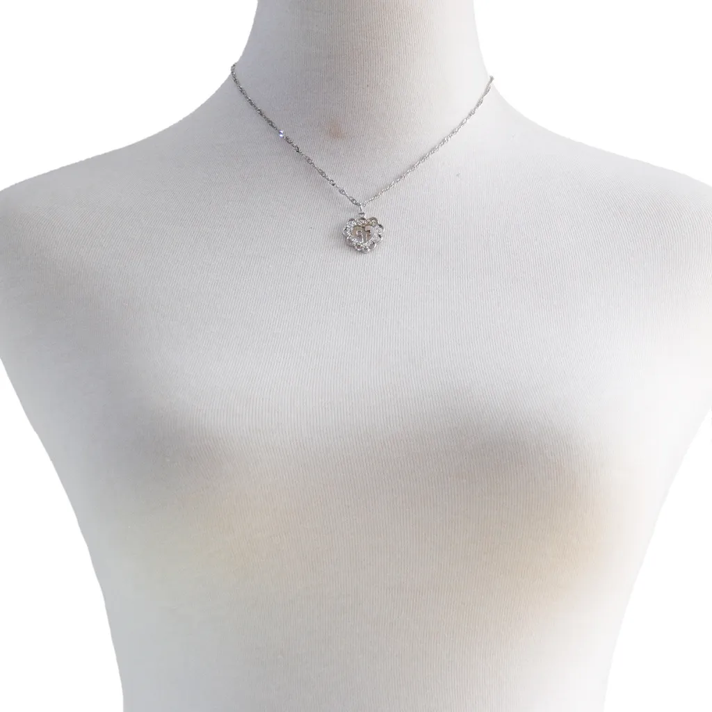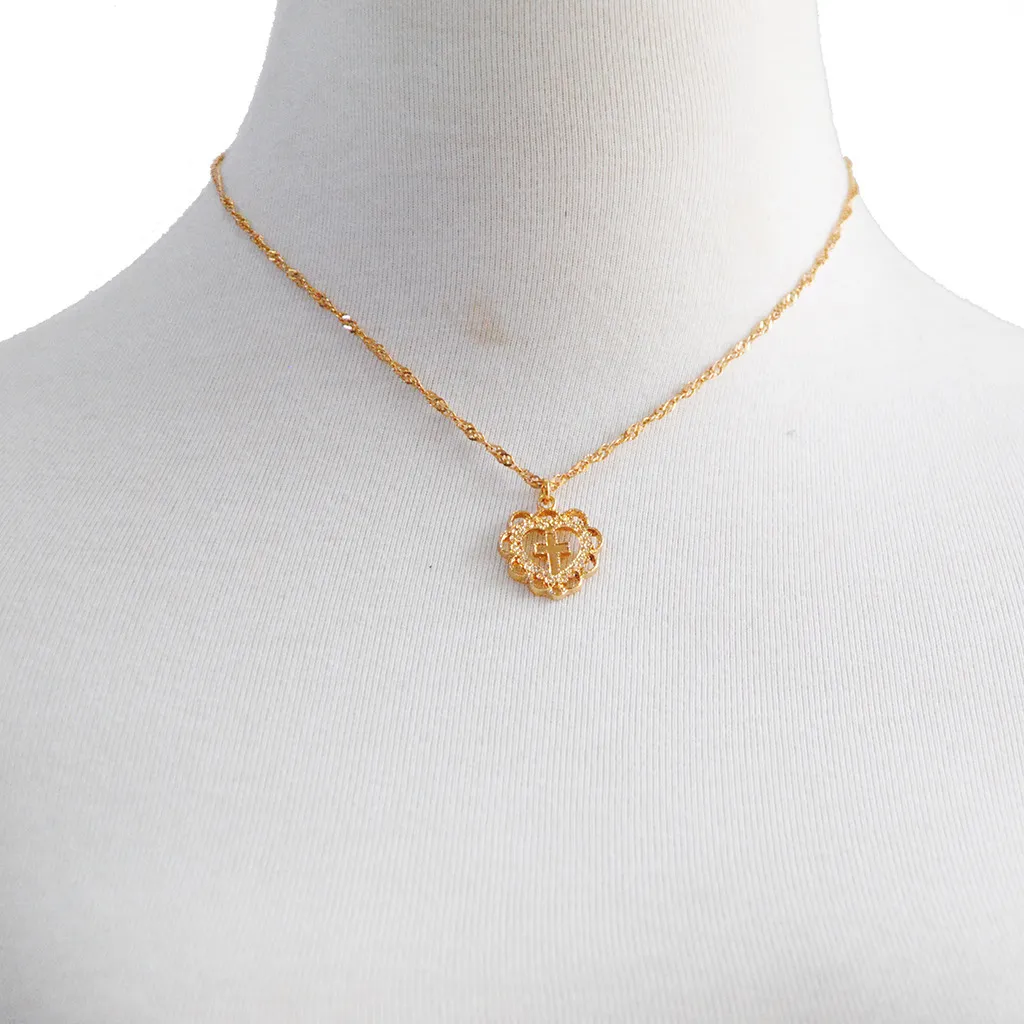 Peach Heart Cross Pendant Necklace
