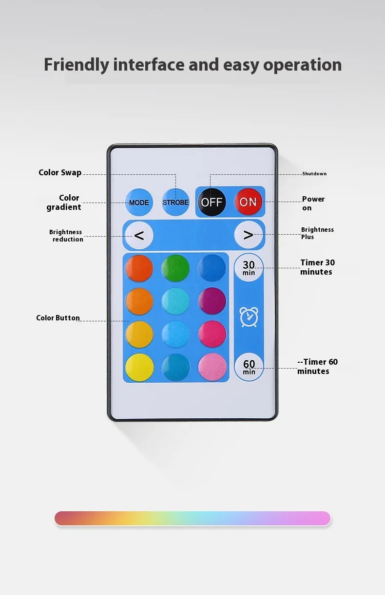 - Adjust Lighting Settings: Use the remote control or built-in switch to select your preferred light color and brightness.