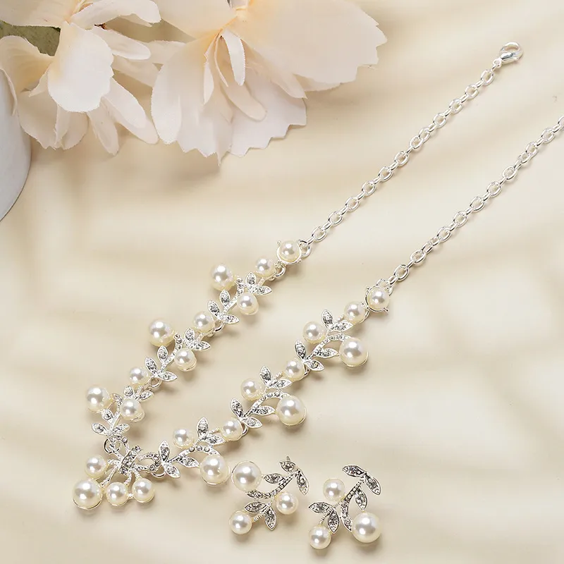 Pearl Bohemian Style Necklace Earrings Jewelry Set