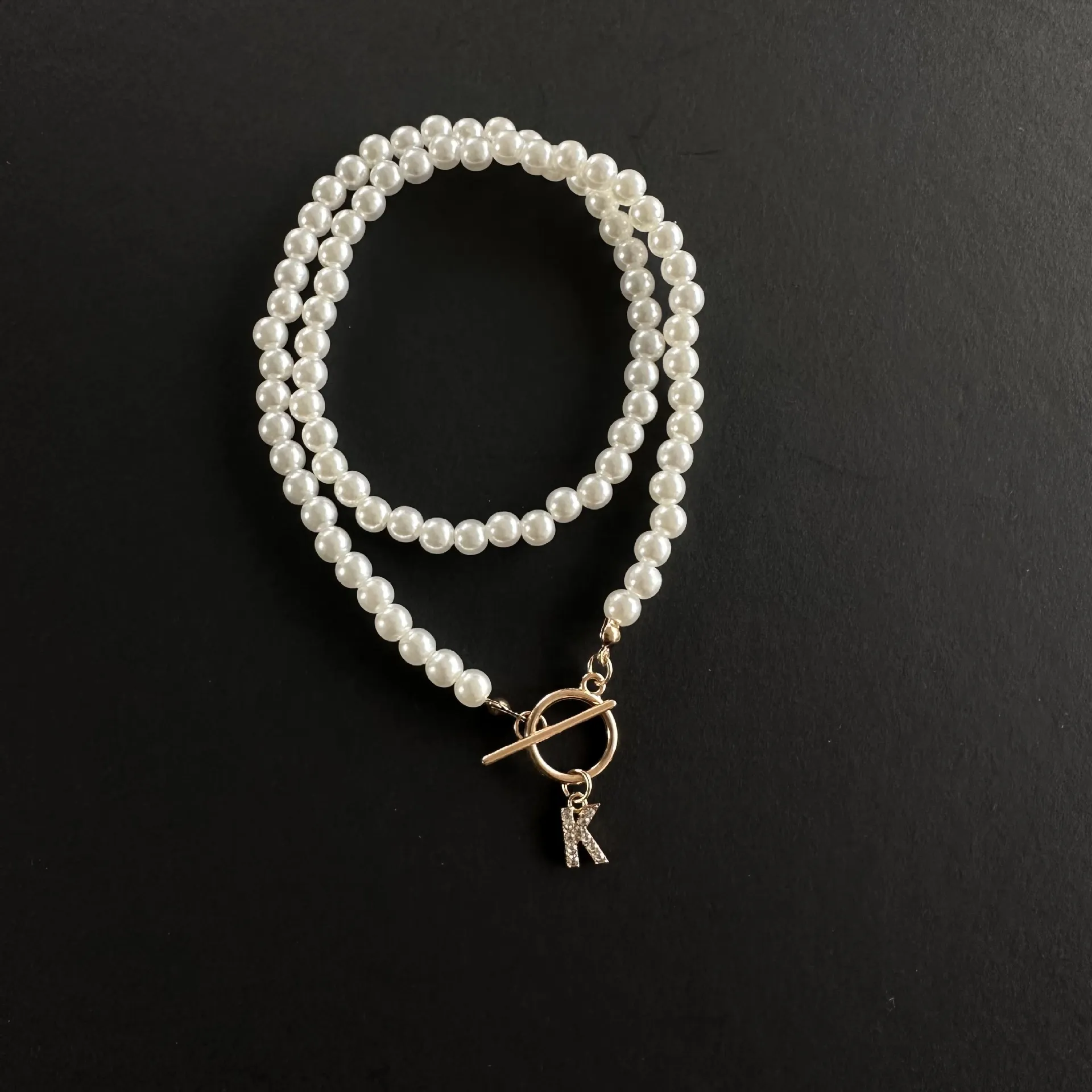 Pearl Chain OT Buckle Inlaid 26 Letter Necklace
