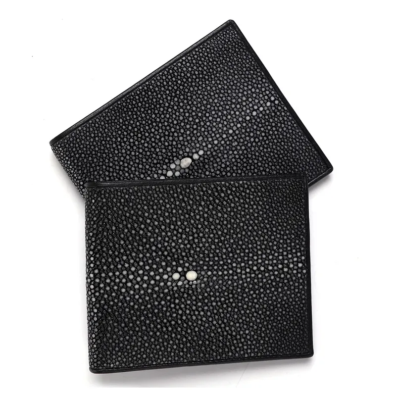 Pearl Fishskin Short Grinding Beads with Cowhide Wallet – Rugged Elegance Meets Exotic Leather