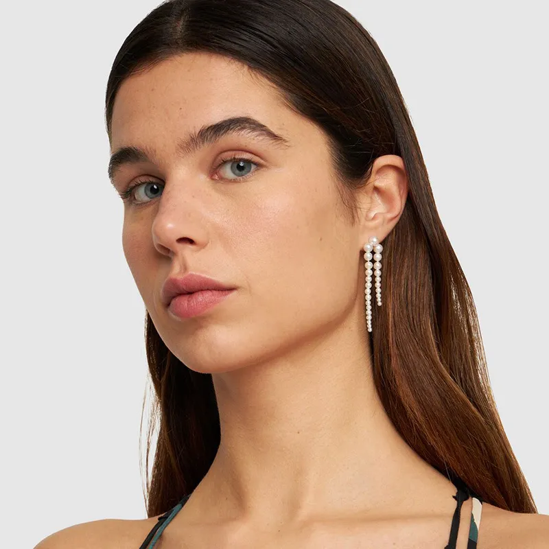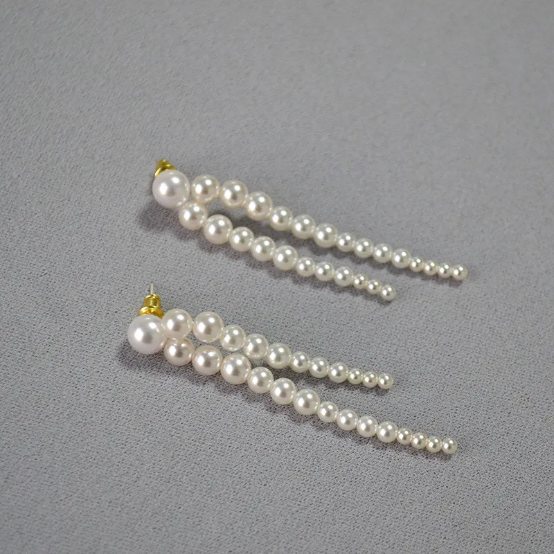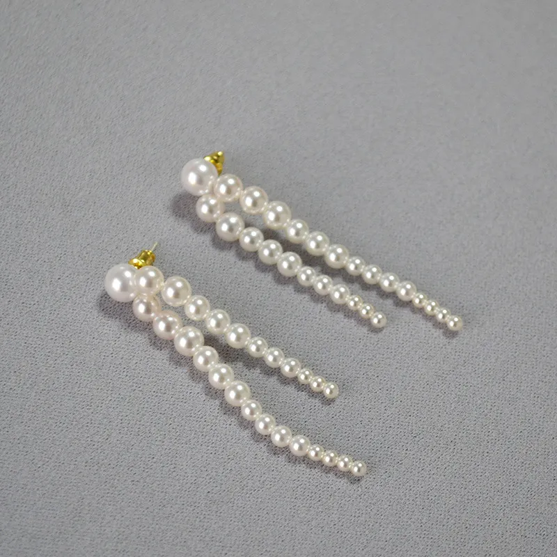 Pearl Gradient Size Tassel Earrings