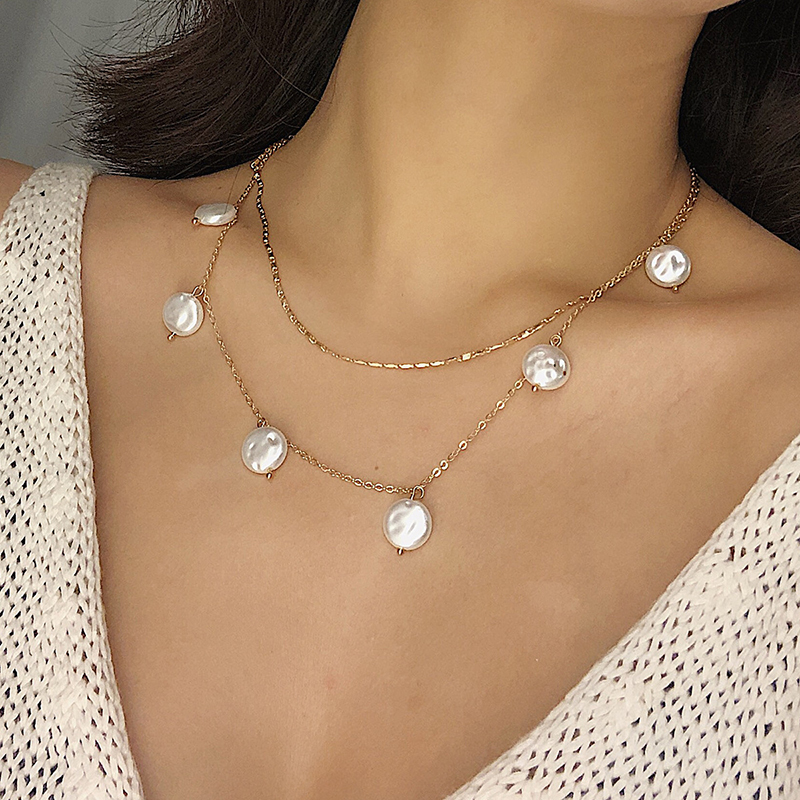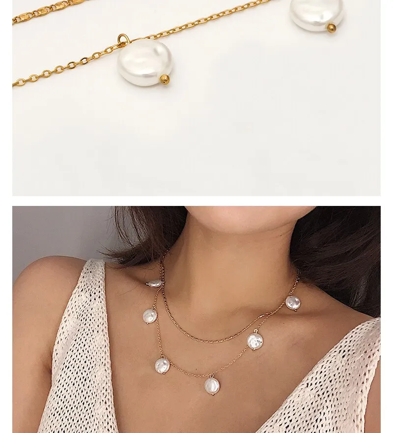 Pearl pendant multilayer necklace female