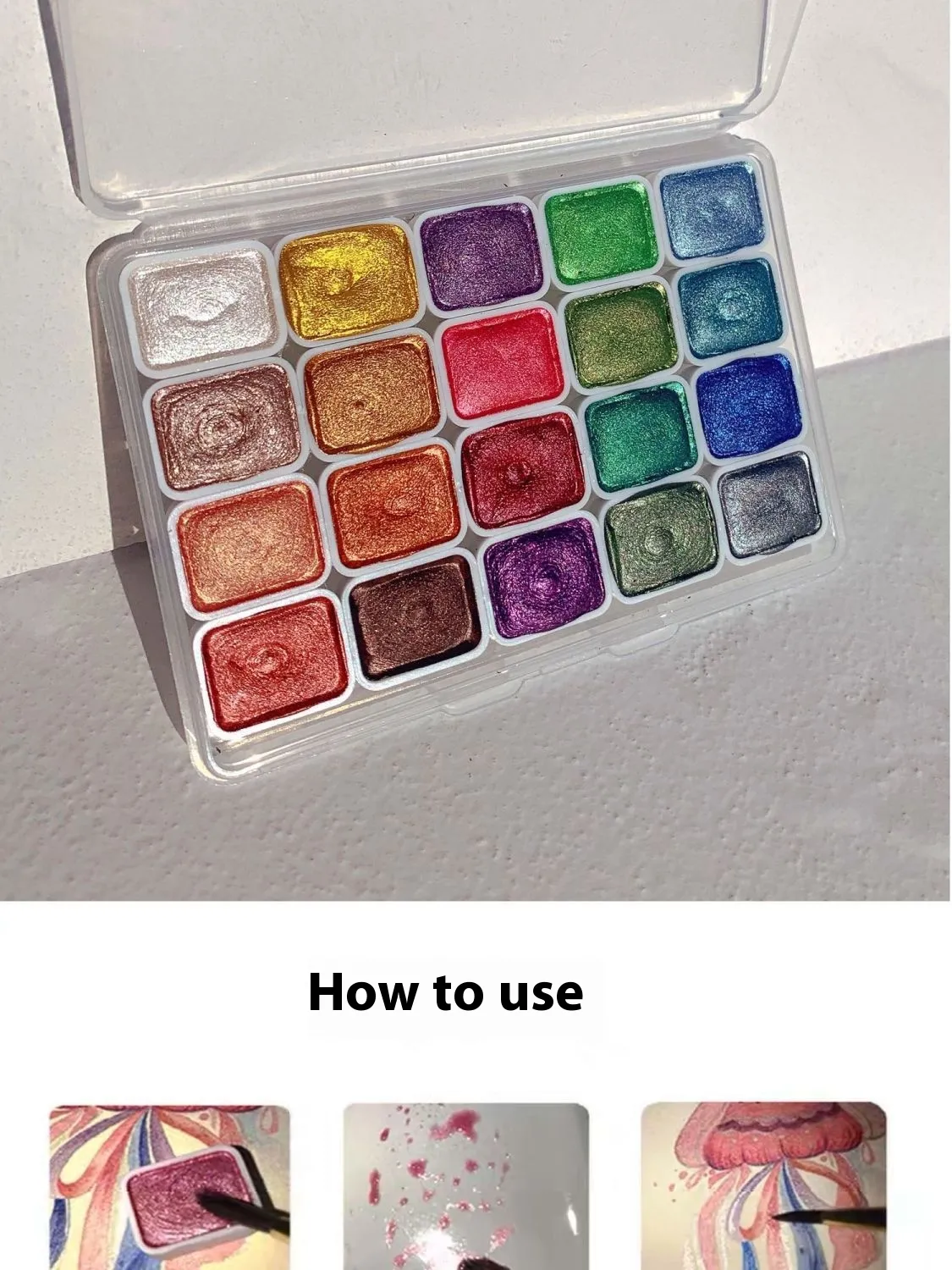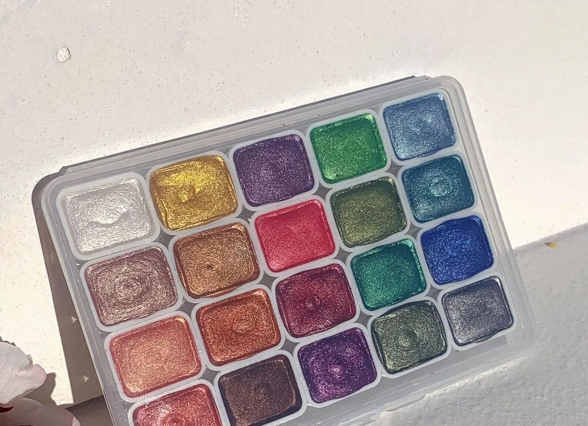 Make your work stand out with the magical glow of pearlescent glitter watercolours – where creativity meets shimmer.