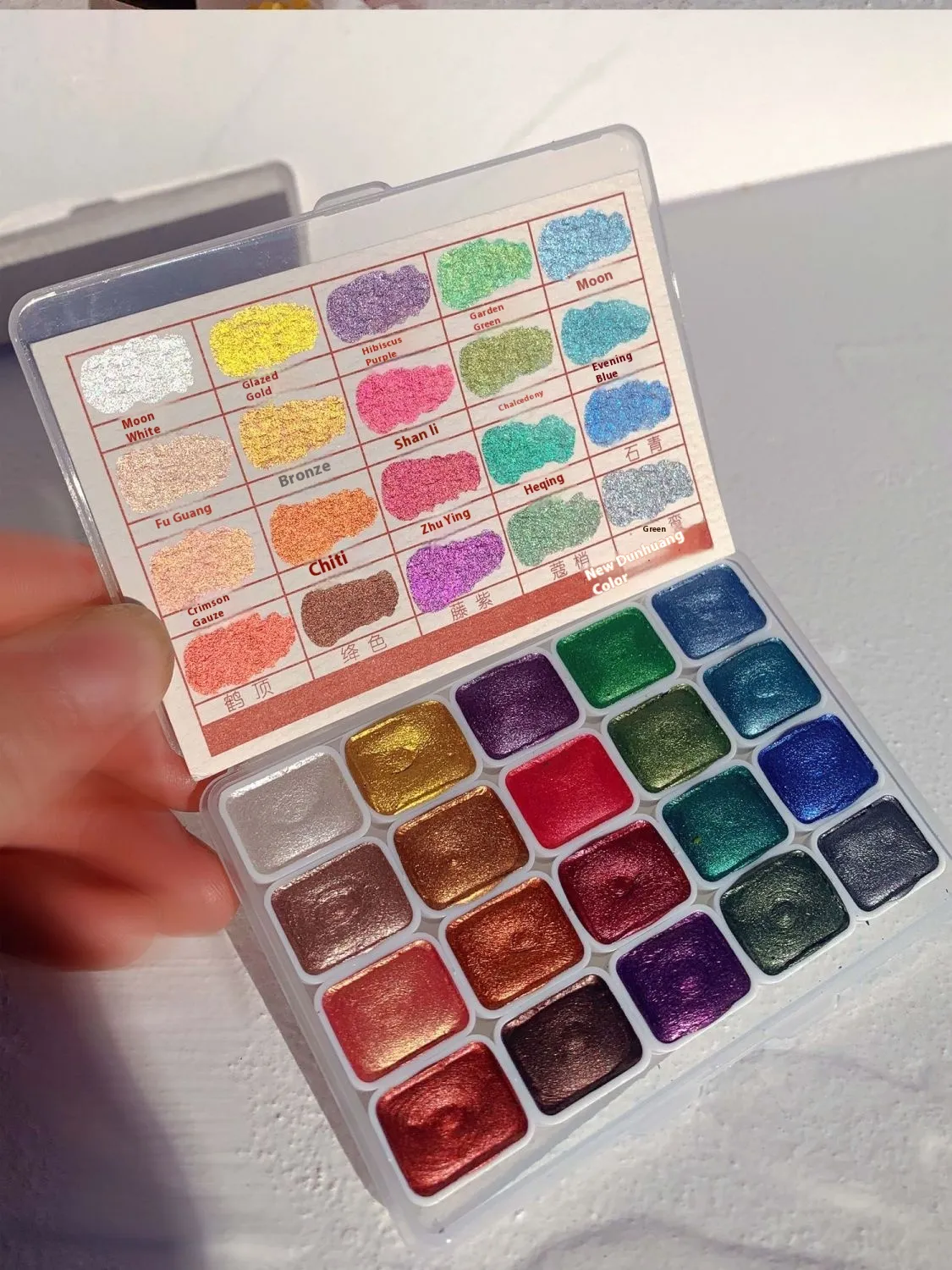 Add brilliance to your artwork with the Pearlescent Watercolor Concentrated Painting Glitter Solid Set – a must-have for painters who want their work to truly shine. This set includes highly pigmented, solid watercolours infused with glitter and pearlescent effects, giving your paintings a glowing, multidimensional finish.